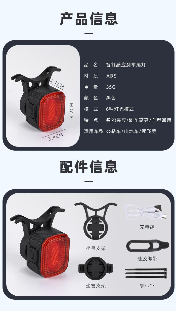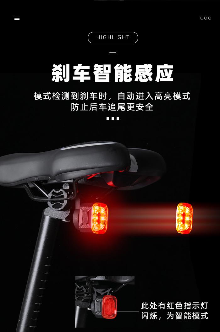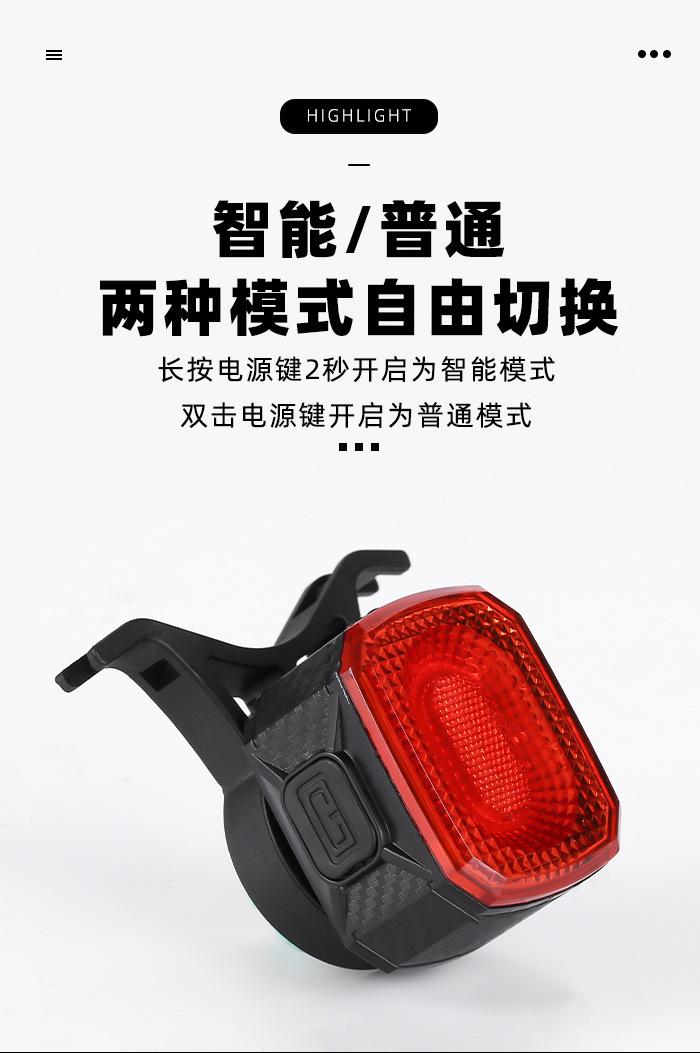 Luz Trasera para Bicicleta de Montaña, Sensor Inteligente de Vibración de Freno, Luz de Advertencia para Ciclismo Nocturno en Bicicleta de Carretera, Luz para Ciclismo
