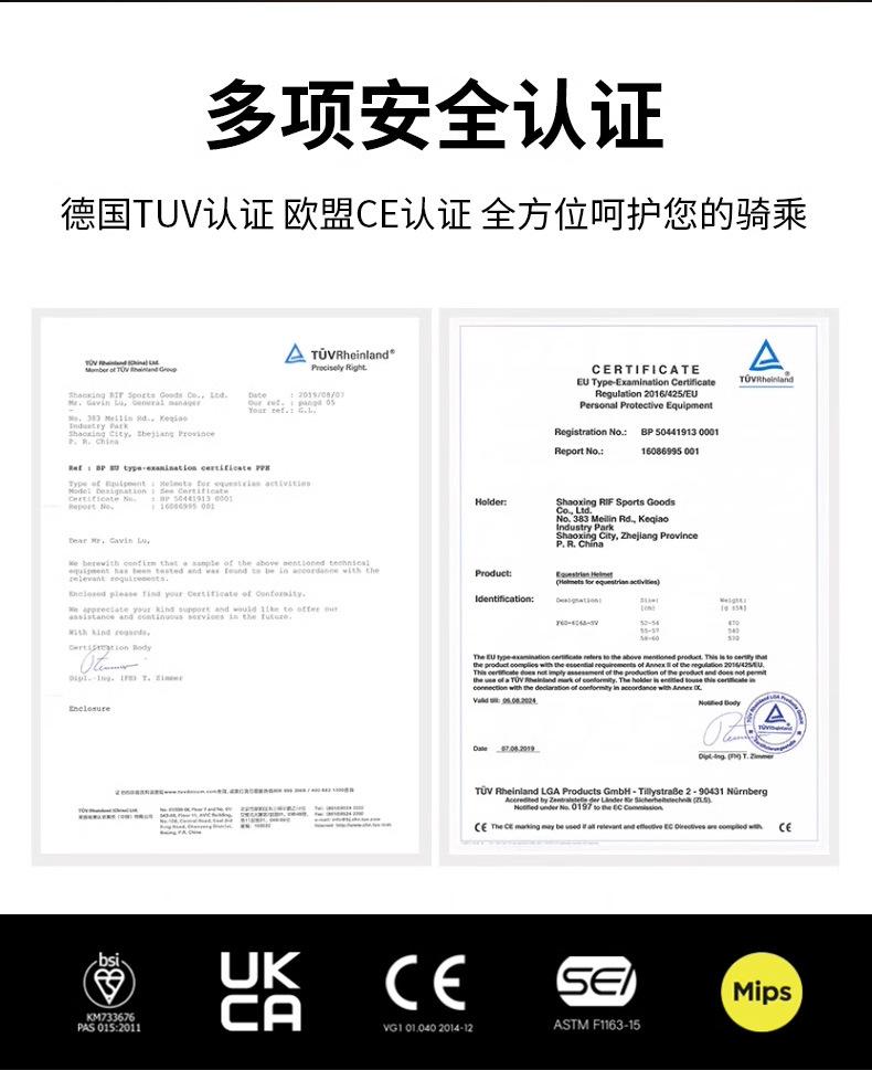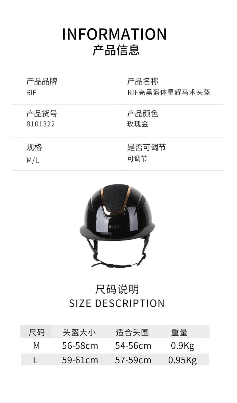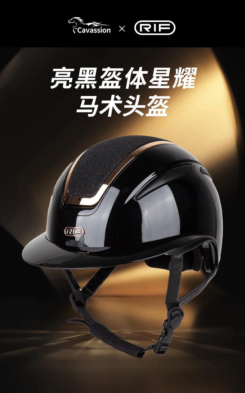 Casco Rif Co-Branded Negro Brillante Casco Ecuestre Estrellado Casco de Equitación Competición Seguridad Sombrero Ajustable 8101322