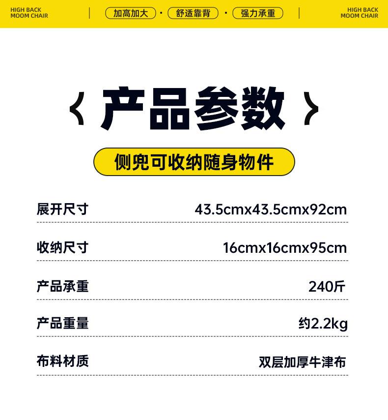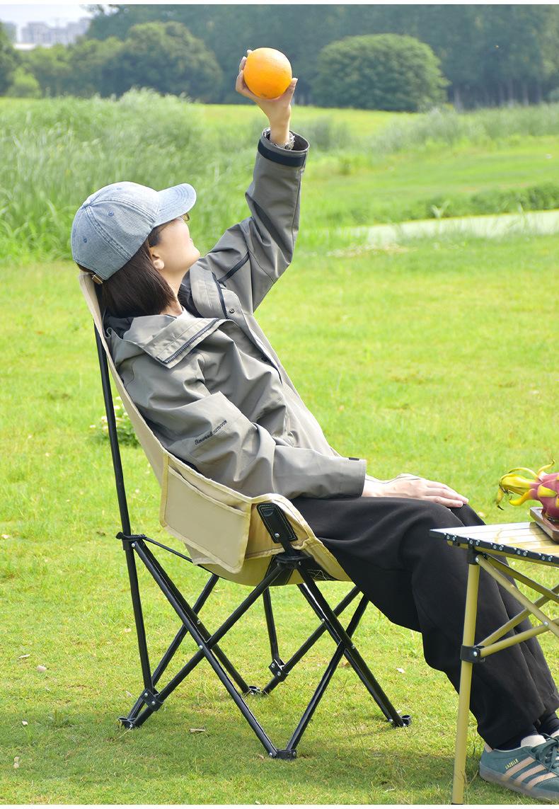 Silla Luna Transfronteriza Ajustable en Altura Almacenamiento Portátil Exterior Reclinable Plegable Picnic Camping Taburete de Pesca