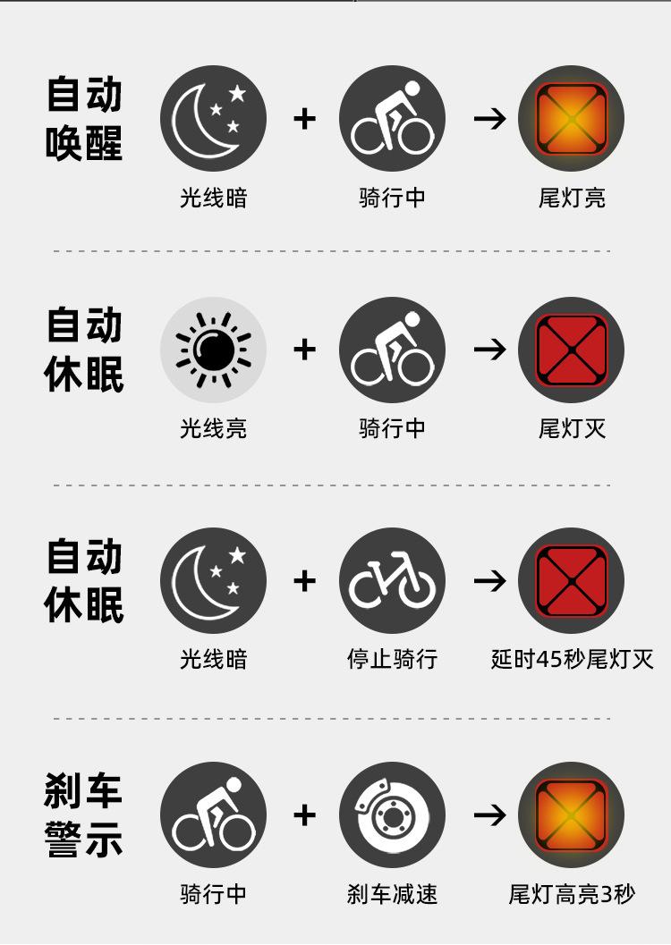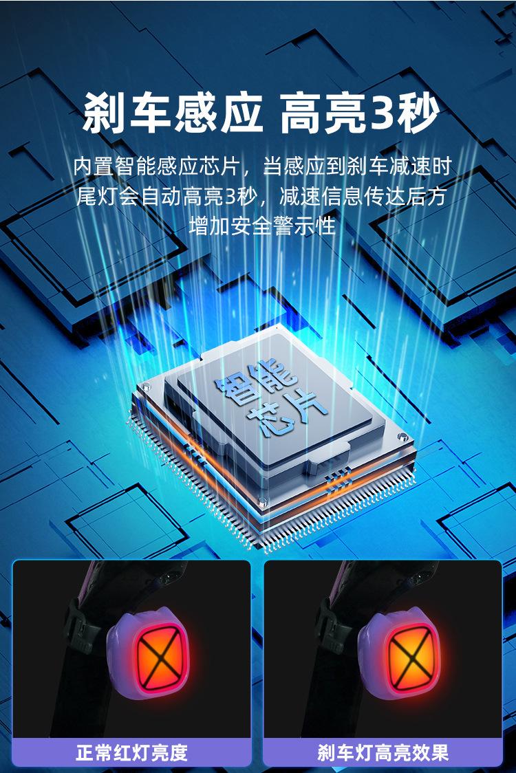 Mountain bike road bike night riding smart brake flash type-c charging safety warning accessories tail light outdoor