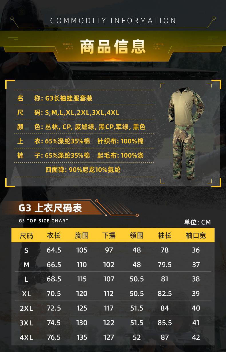 Traje Táctico G3 Tipo Rana de Entrenamiento al Aire Libre al por Mayor Traje de Camuflaje Traje de Combate Traje de Rana de Manga Larga Traje de Camuflaje Ropa de Hombre Resistente al Desgaste