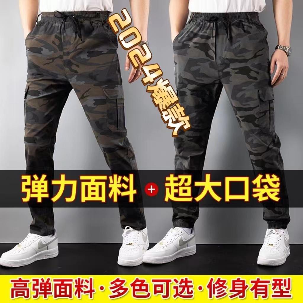 Pantalones cargo superelásticos de camuflaje con múltiples bolsillos, resistentes al desgaste, de bolsillo grande, para exteriores, ocio, deportes, trabajo, holgados, de cintura alta