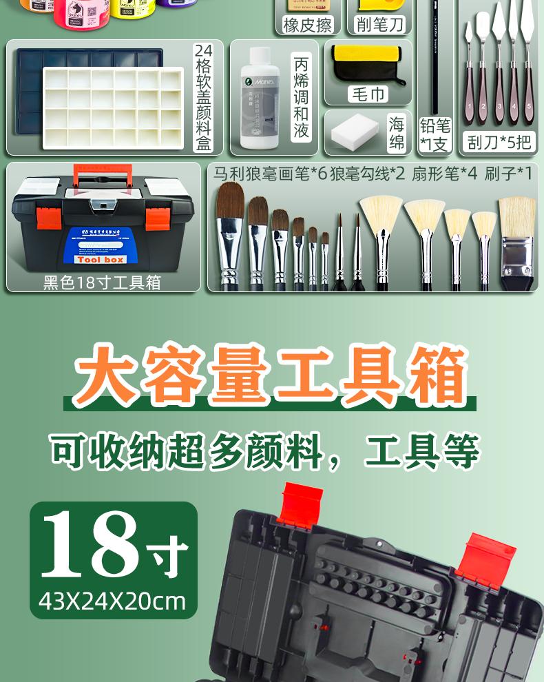 Commonly used 24 colors [recommended for practice + 16inch tool box] basic tools