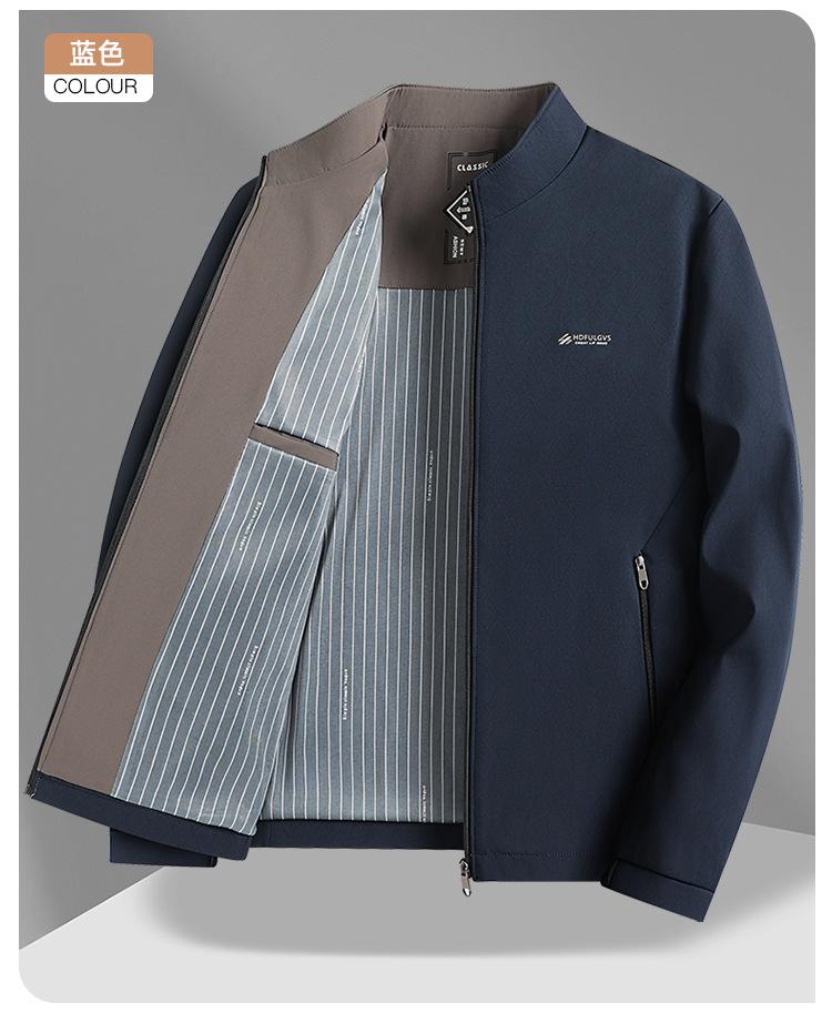 Chaqueta de alta gama para hombre, de primavera y otoño, con cuello vertical, resistente a las arrugas, informal, combinable, para papá de mediana edad.