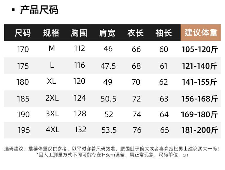 170 recommended 45-57.5kg, 175 recommended 57.5-65kg, 180 recommended 65-72.5kg, 185 recommended 72.5-80kg, 19...