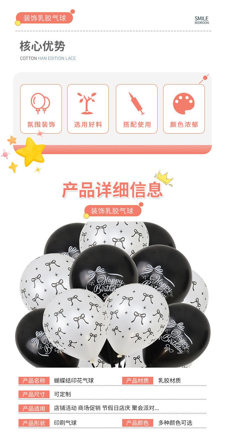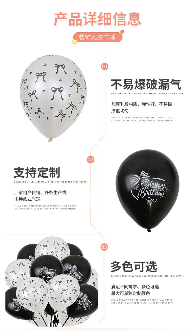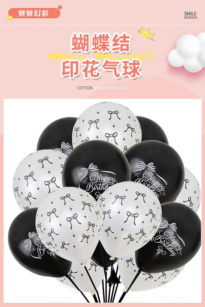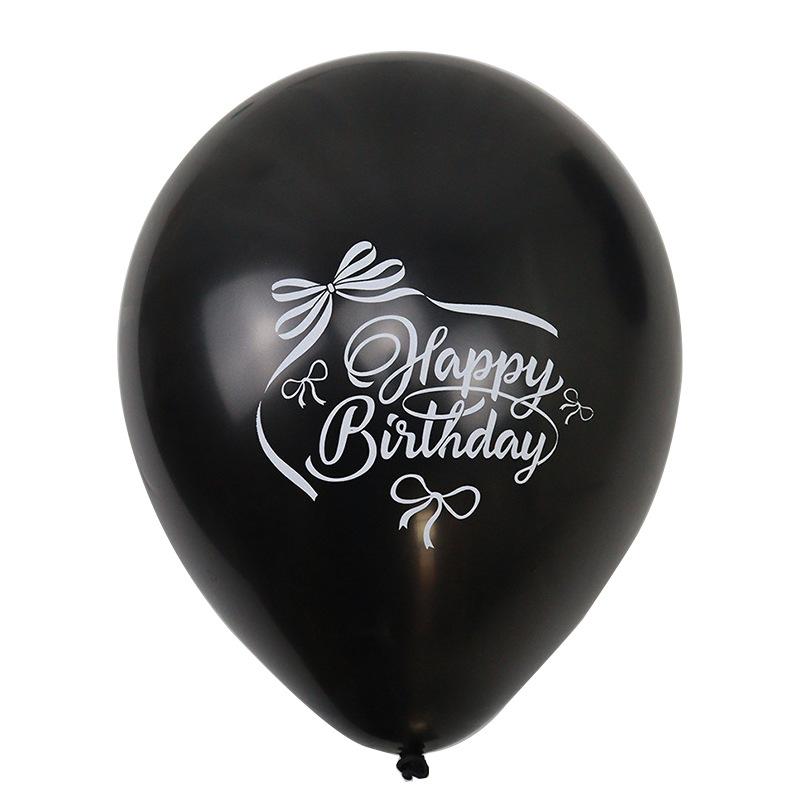 12-inch 2.8g black balloon happy birthday (100 pcs/pack), 12-inch 2.8g white balloon with black bow (100 pcs/p...