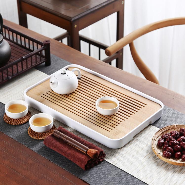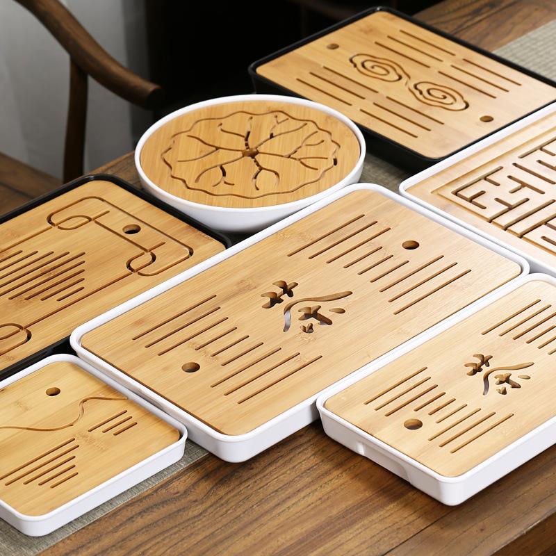 Bandeja de Té de Bambú Simple Juego de Té Kung Fu Almacenamiento de Drenaje y Drenaje Bandeja de Té Bandeja de Remojo Seco Mesa de Té Pequeña Mar de Té Hogar Hotel