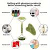 Usar: 1. Material de piedra de jade: El juego de masajeador facial es de material de piedra jade con acero inoxidable, proporcionarán una sensación de frescura, con una superficie lisa, se puede obtener fácilmente una experiencia de uso cómoda.; La piedra de jade duradera los hace servir y acompañarte durante mucho tiempo. 2. Reduce la hinchazón y las líneas finas: use rodillo de jade y herramienta gua sha varias veces al día, pueden promover eficazmente la circulación sanguínea, reducir la hinchazón, suavizar las arrugas de la cara y el cuello, el uso prolongado puede mejorar la condición de la piel y hacer que luzca bien 3. Usos del rodillo de jade: el rodillo de jade tiene 2 extremos, el extremo más grande es adecuado para masajear la cara y el cuello, el rodillo pequeño se ajusta a los ojos y a las esquinas pequeñas, empuje suavemente a lo largo de la dirección de crecimiento de la piel y masajee durante 10 - 15 minutos, o caliéntelo en agua caliente, vuelva a masajear para acelerar la absorción de la crema para el cuidado de la piel 4. Usos del raspador gua sha: mantenerlo en un ángulo de 15 grados al moverse desde el centro del rostro hacia la línea del cabello, luego hacia abajo por el cuello hacia la clavícula, que es un antiguo método chino para mejorar la microcirculación sanguínea; Ponerlo en el refrigerador, experimentar relajación extra