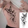 Calcomanía de Tatuaje Temporal Negra Delicada Patrón de Mariposa Flor Tamaño Grande Impermeable Larga Duración Tatuaje Falso Arte Corporal Fiesta Festival Maquillaje Corporal