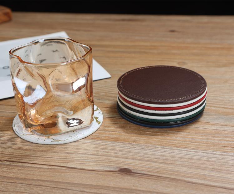 10cm leather black can pad cover Cup, 10cm leather white, 10cm leather red, 10cm leather black marble pattern,...