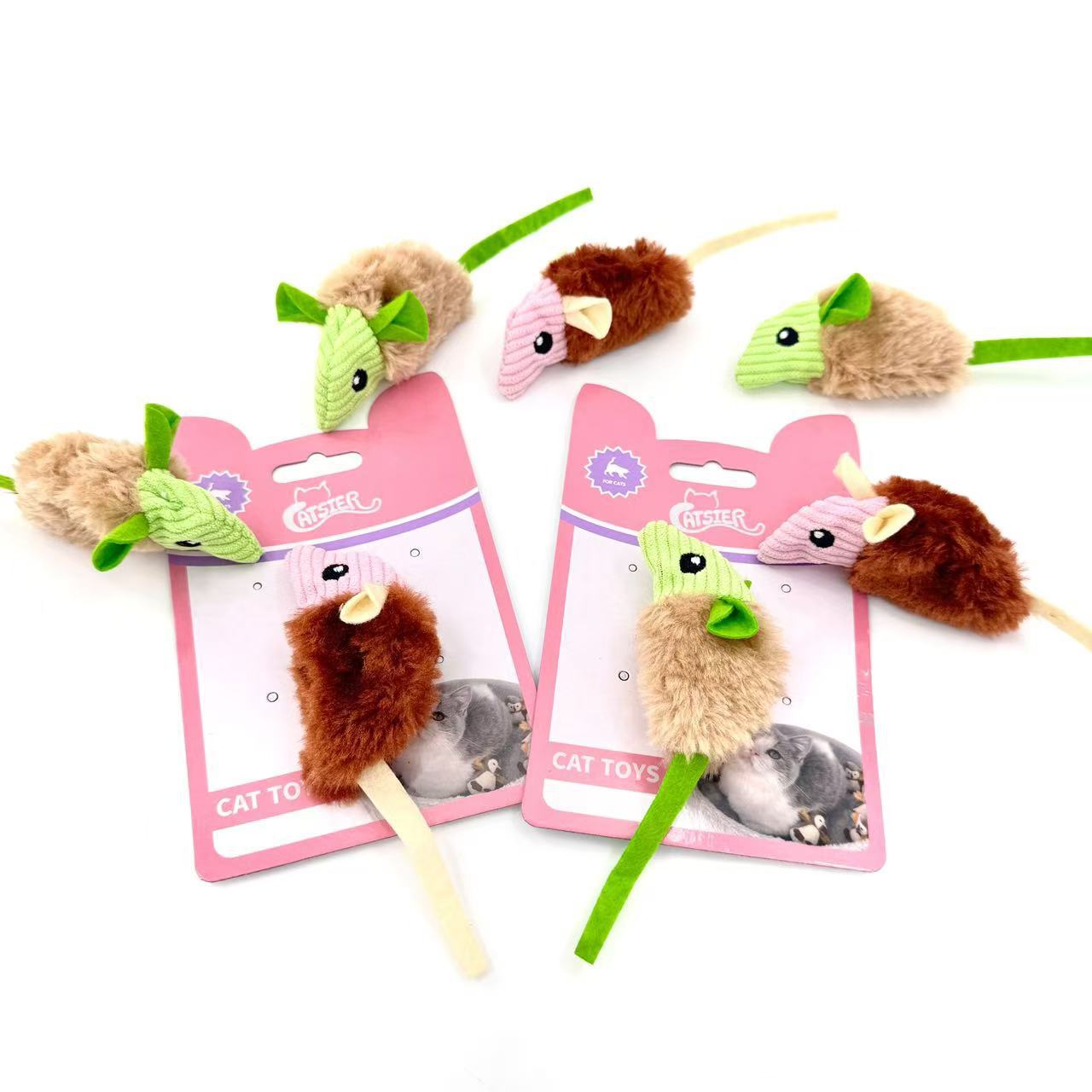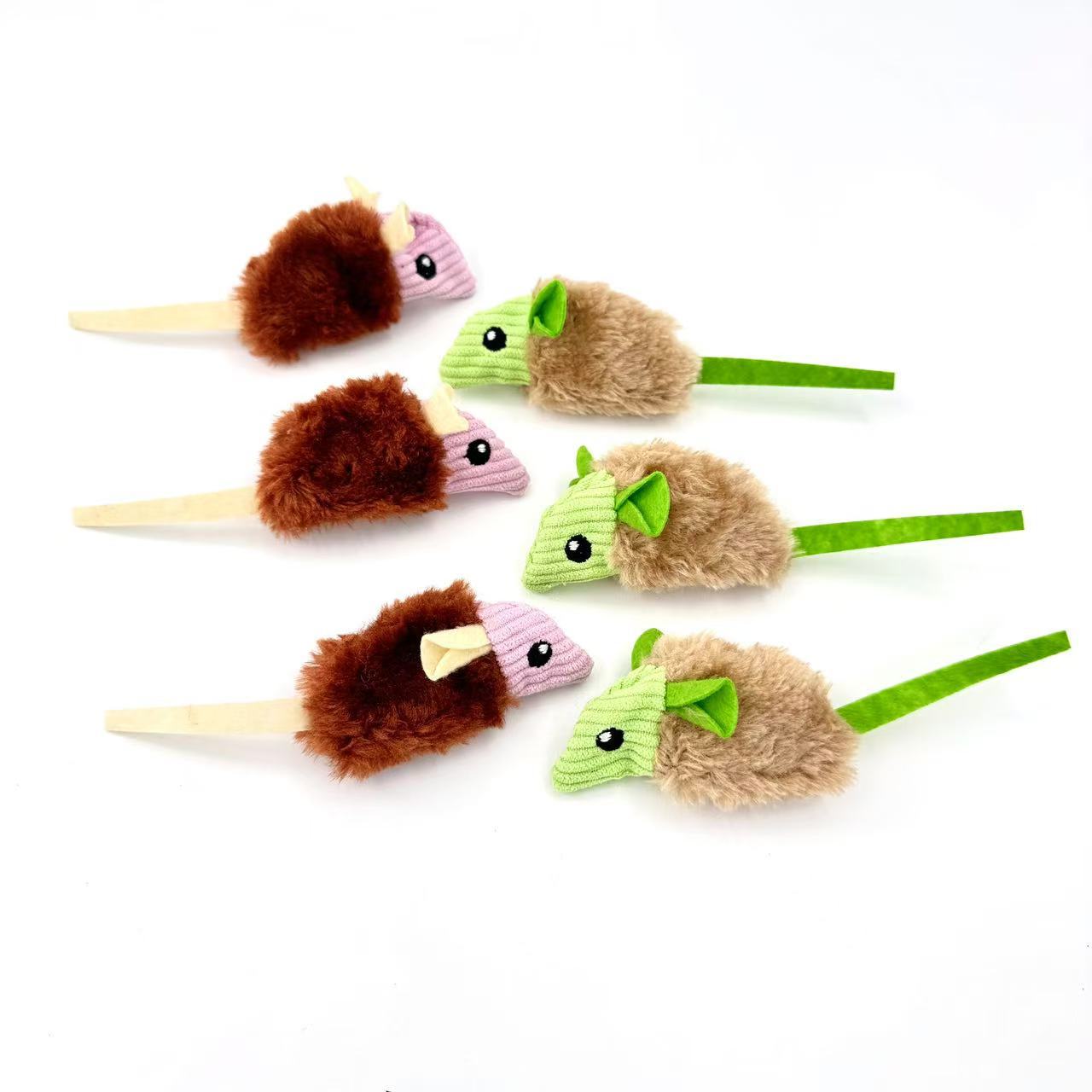 Fábrica en stock venta al por mayor ratón de peluche bicolor juguete para gato juguete interactivo para gato suministros para mascotas