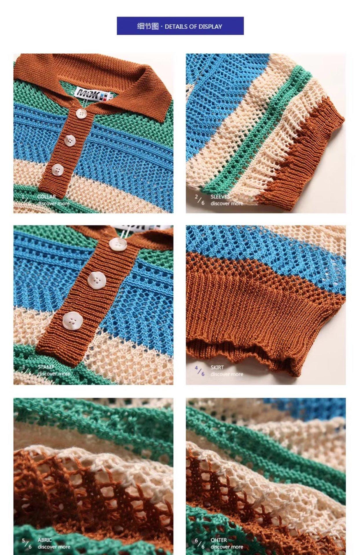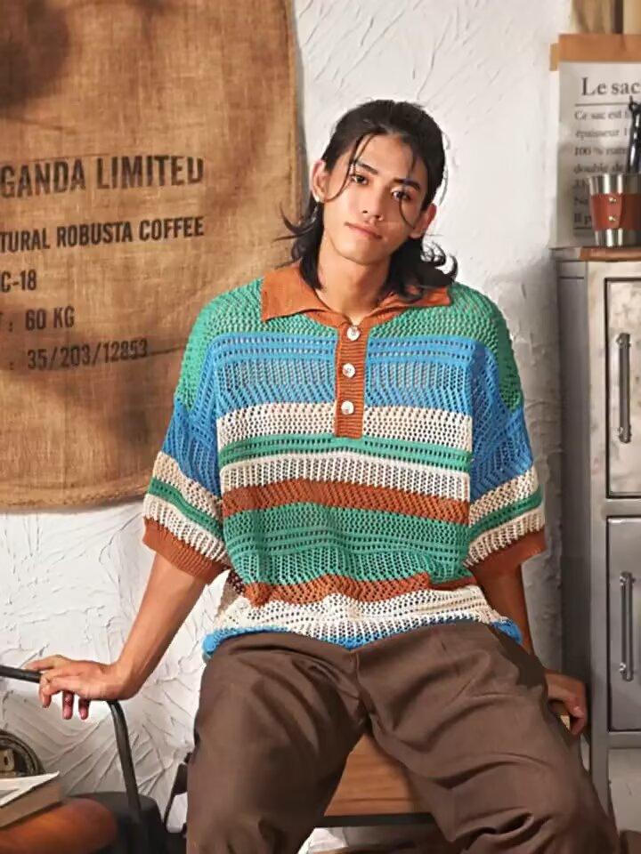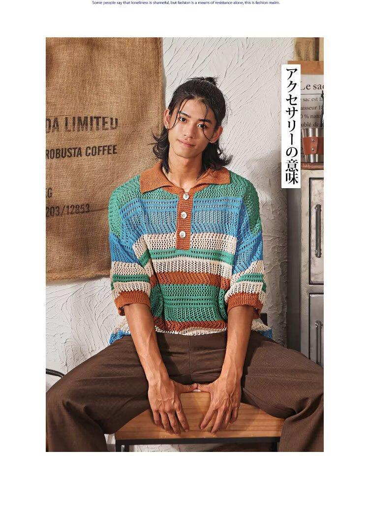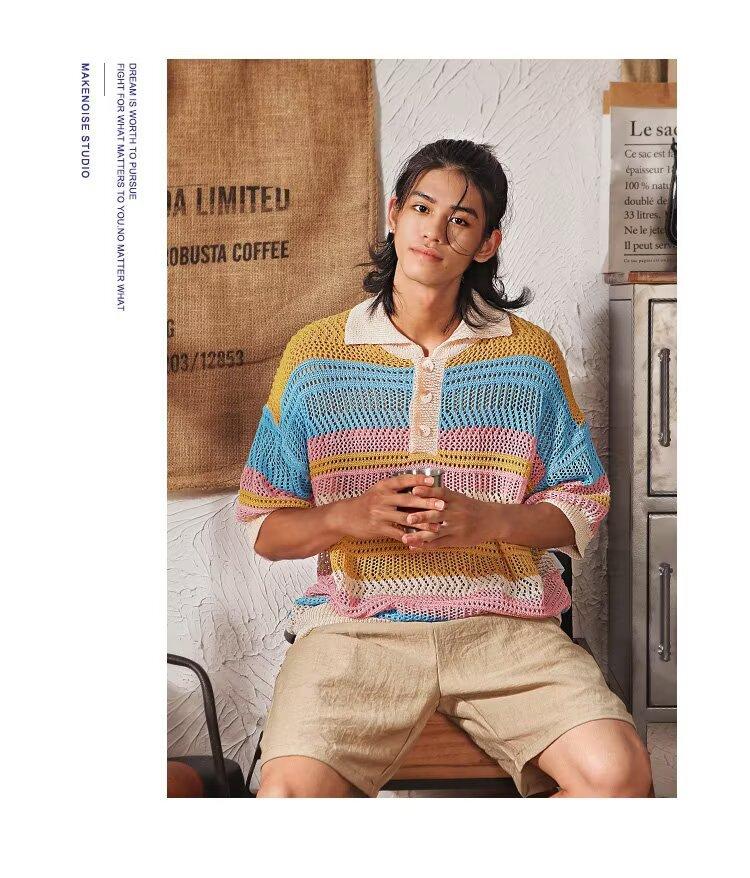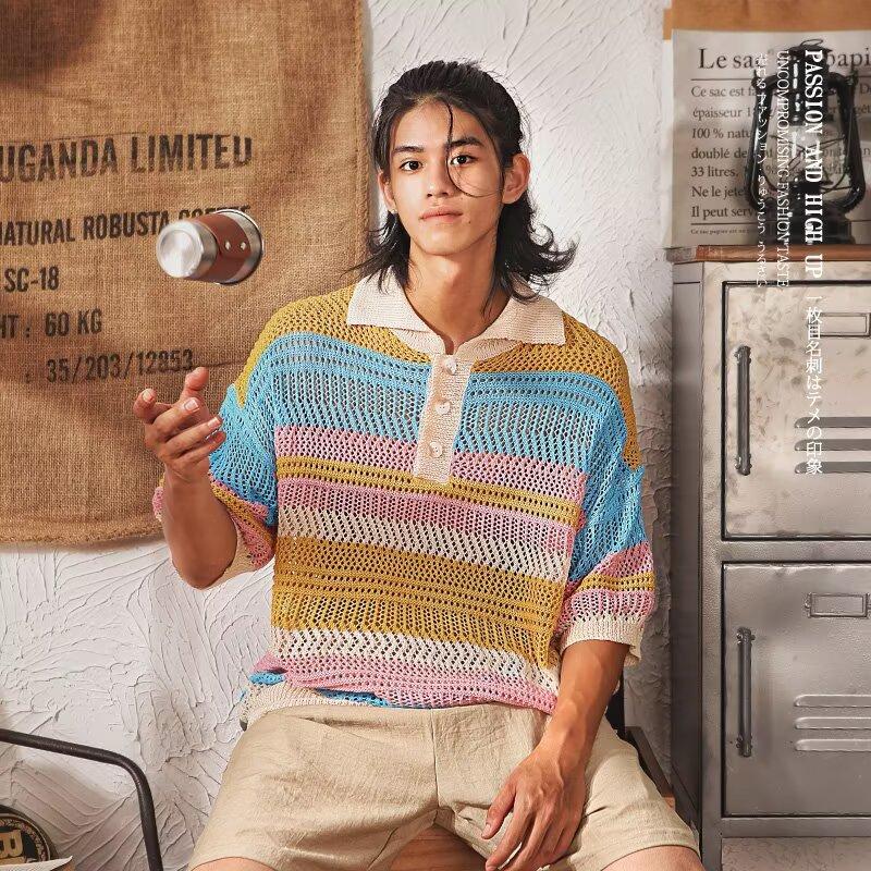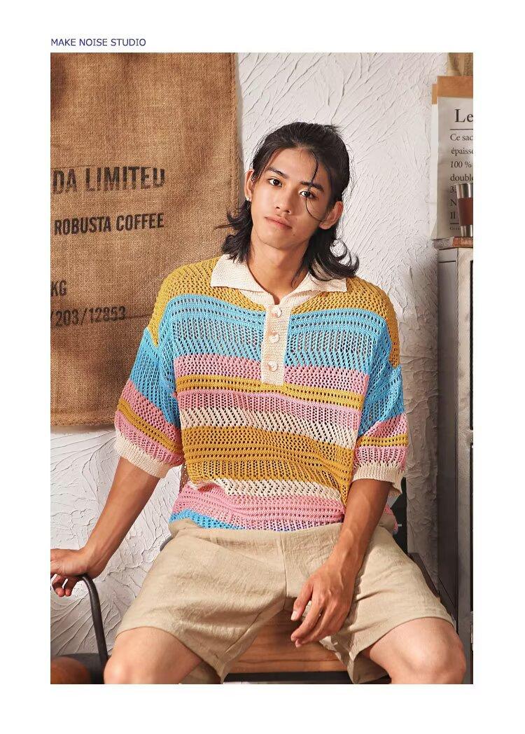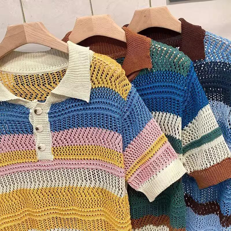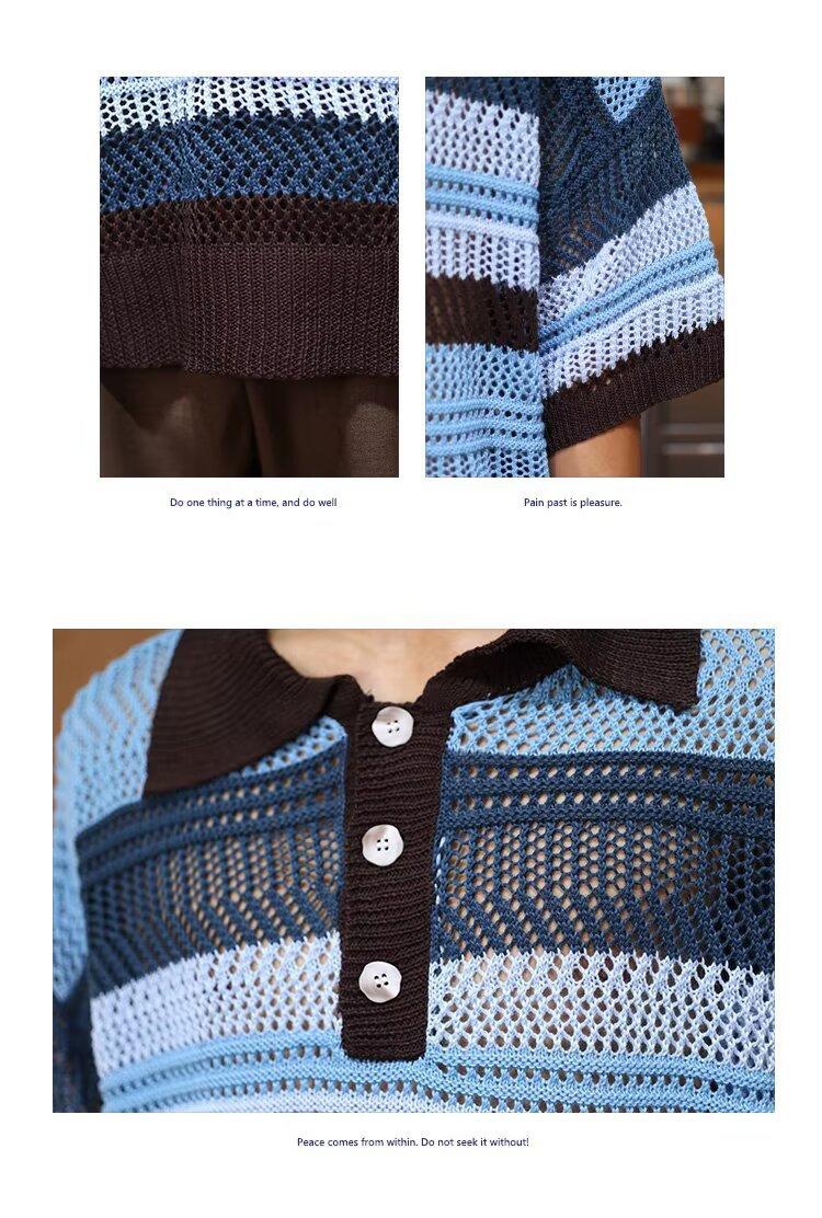 Verano nuevo suéter de manga corta para hombre calado a rayas retro camisa POLO negocios marea alta comercio exterior transfronterizo al por mayor