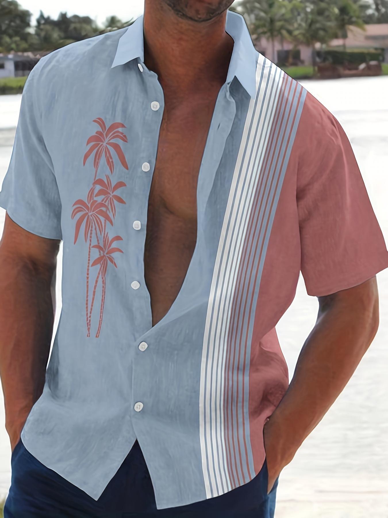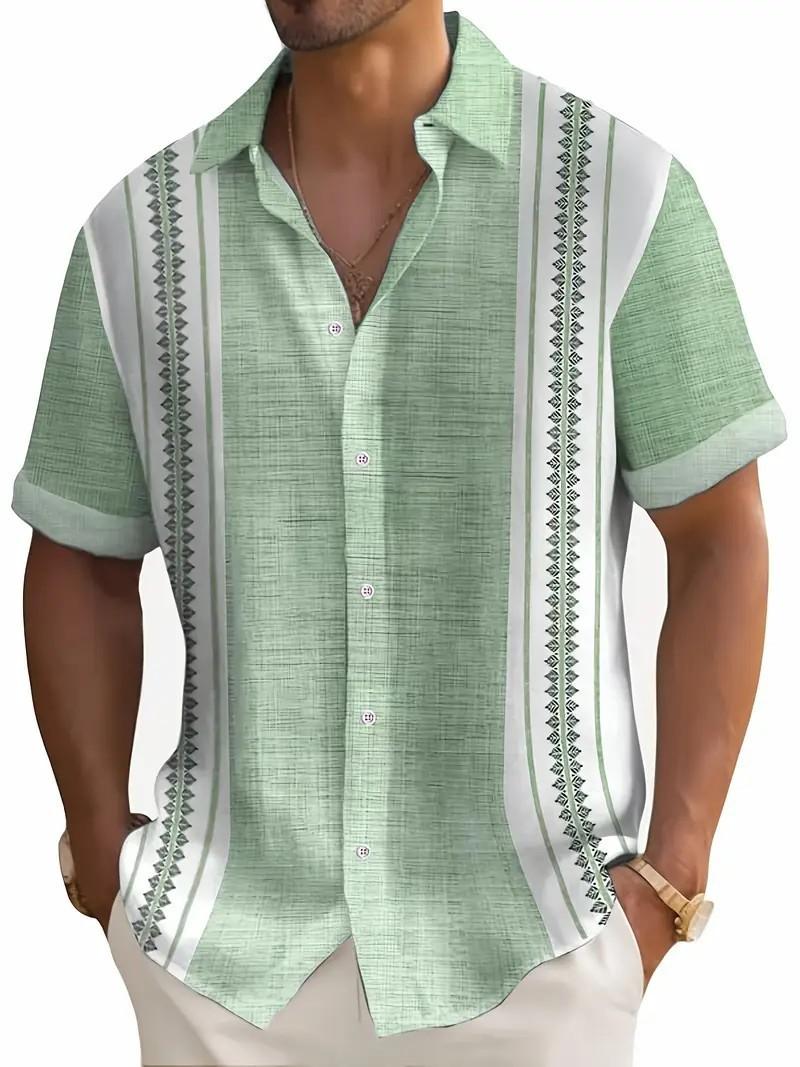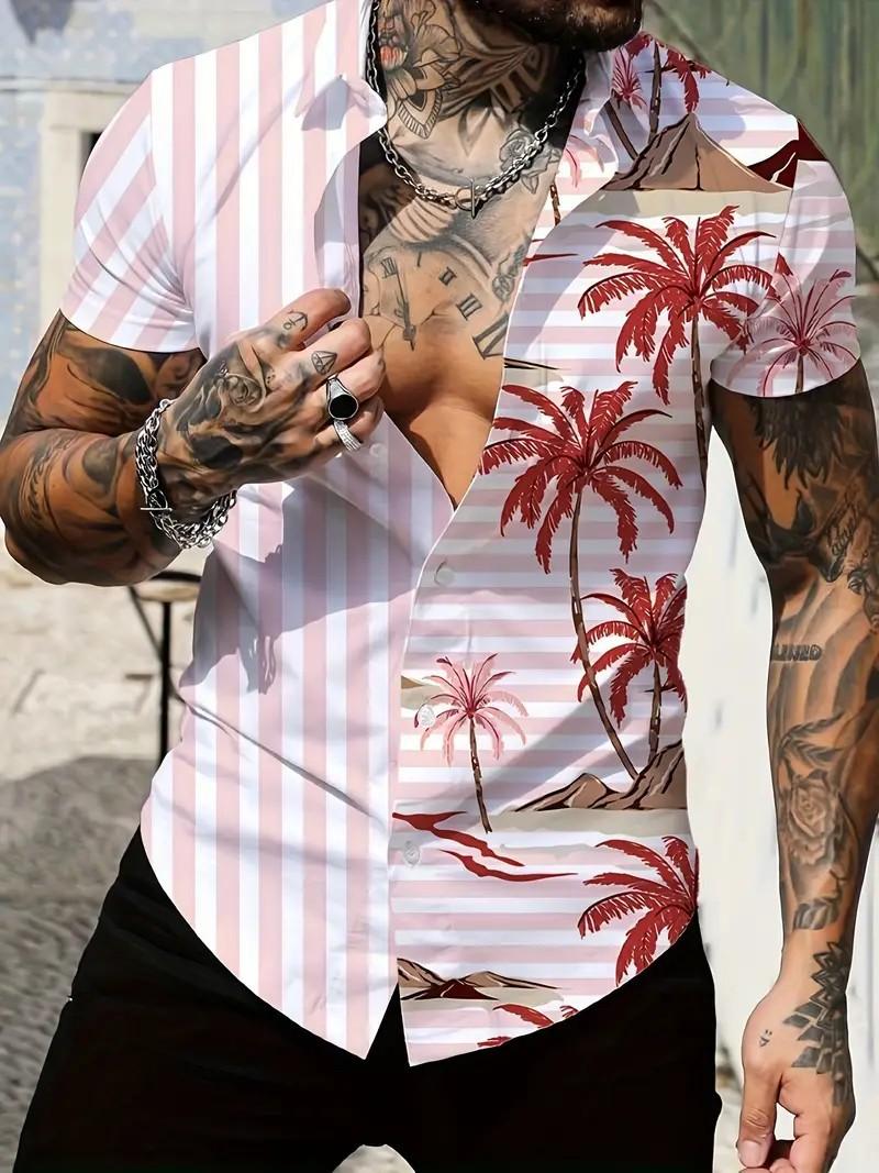 2025 Nueva Camisa Casual Deportiva Versátil de Verano para Hombre de Alta Calidad con Estampado de Rayas de Manga Corta