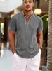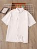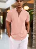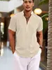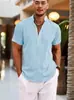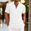 Comercio Exterior Transfronterizo Amazon Casual para Hombre Verano Simple Color Sólido Camisa Manga Corta Juvenil Medio Cárdigan Cuello Mao