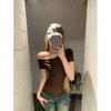 Compra Camiseta de Manga Corta con Hombro Caído Diseñada para Mujer 2025 Verano Nuevo Estilo Chic Ajustada Fuera del Hombro Top Corto al por mayor en Joom.pro