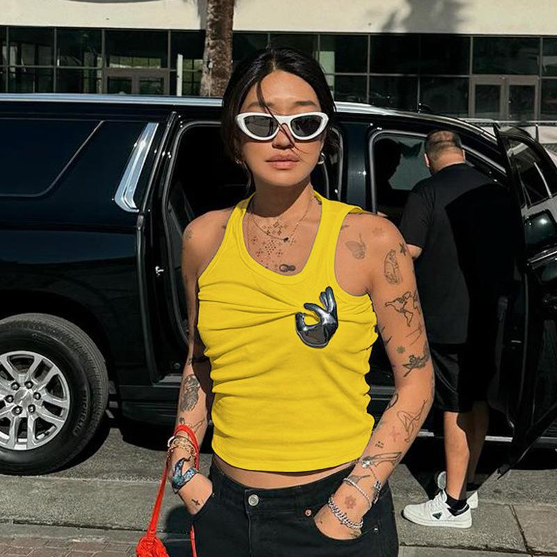 Chaleco plisado personalizado estilo europeo y americano de verano 2025 Nueva celebridad de internet top versátil para mujer