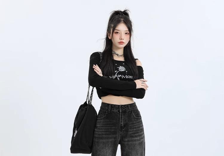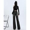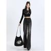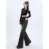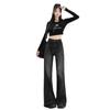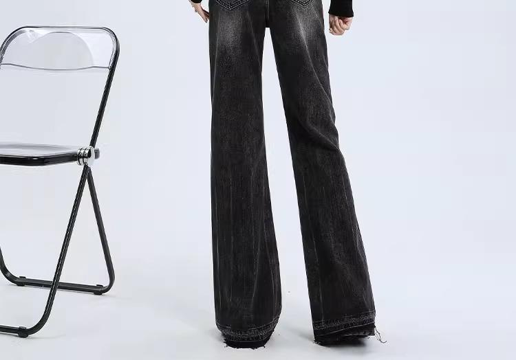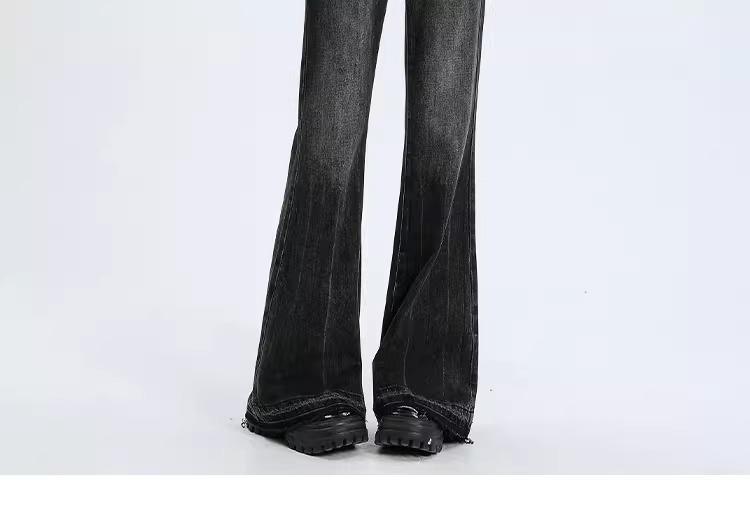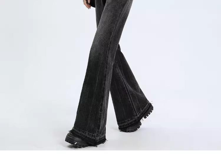 Compra Jeans acampanados micro de borde crudo negro gris para mujer, moda combinable, estilo americano urbano, cintura alta adelgazantes de talla grande, pantalones de pierna ancha al por mayor en Joom.pro