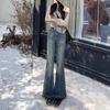Jeans acampanados micro de borde crudo negro gris para mujer, moda combinable, estilo americano urbano, cintura alta adelgazantes de talla grande, pantalones de pierna ancha