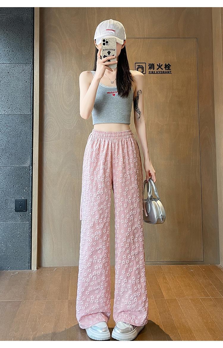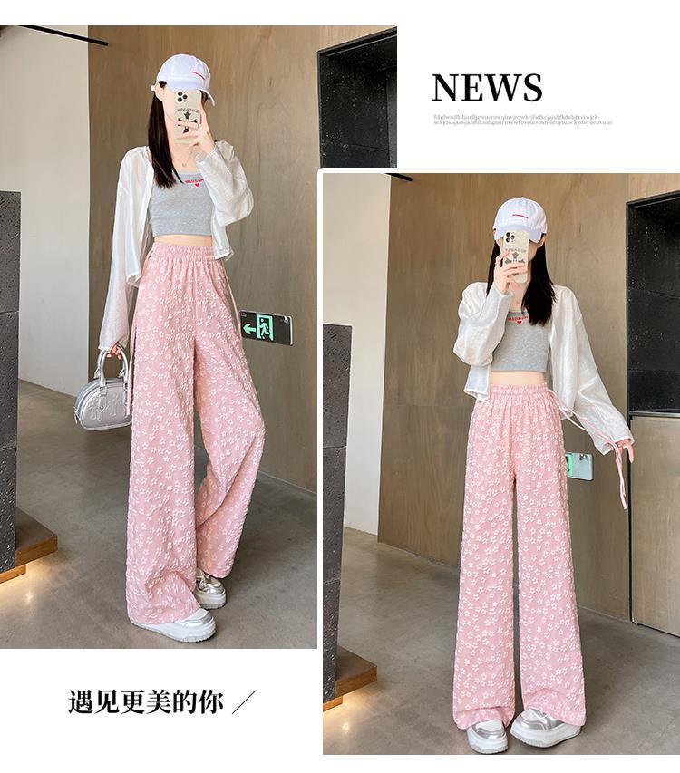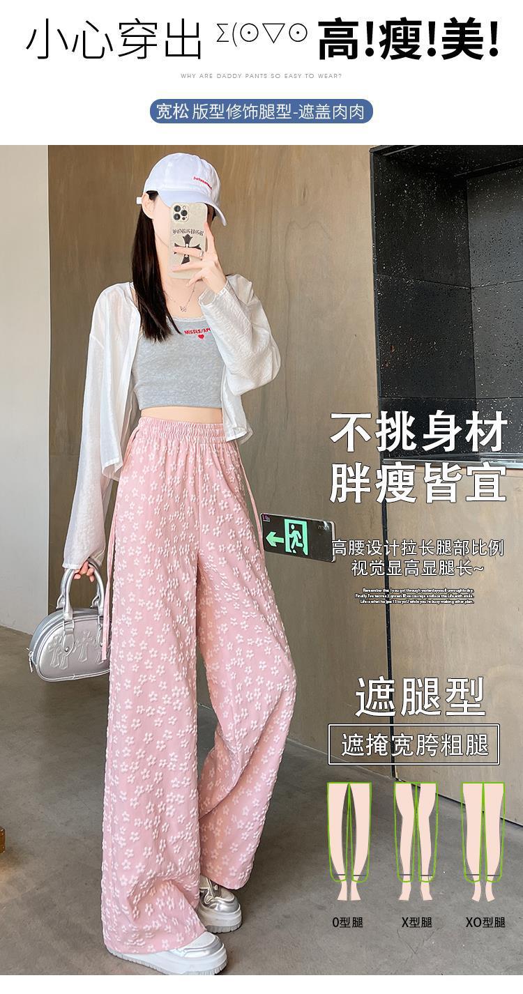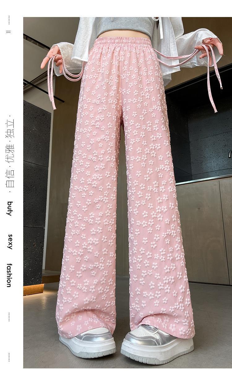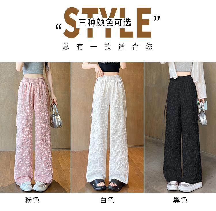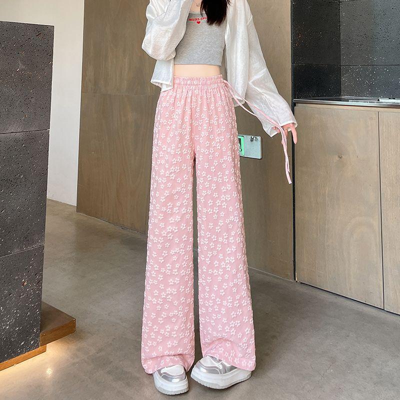 Pantalones de Verano Delgados de Pierna Ancha para Mujer con Estampado Floral Transfronterizo, Modernos, Adelgazantes, de Cintura Alta, Estilo Versátil, Pantalones Casuales, Pantalones Deportivos