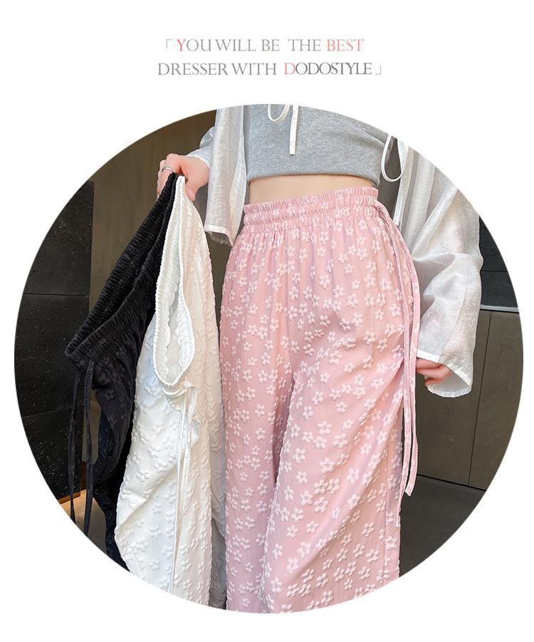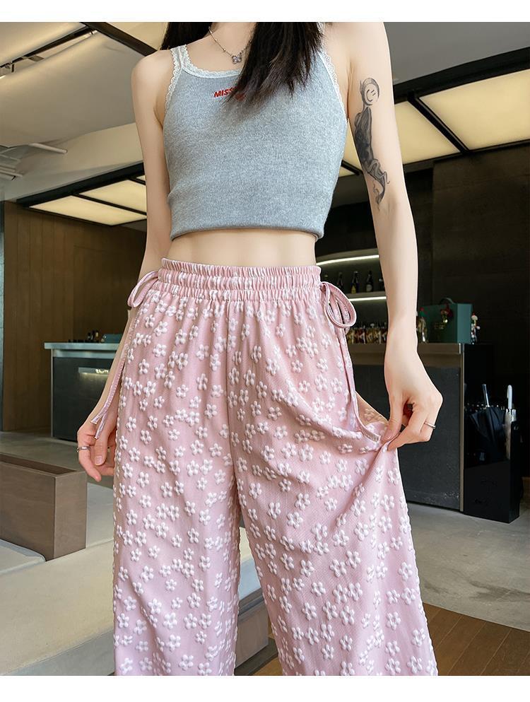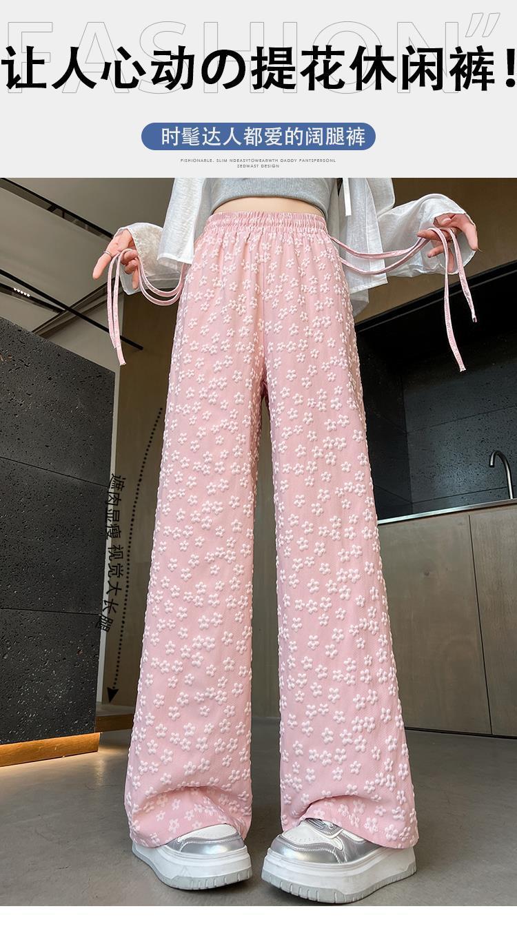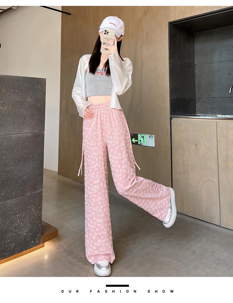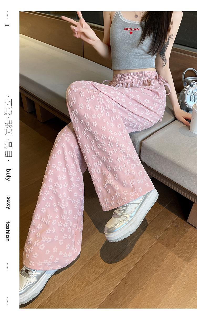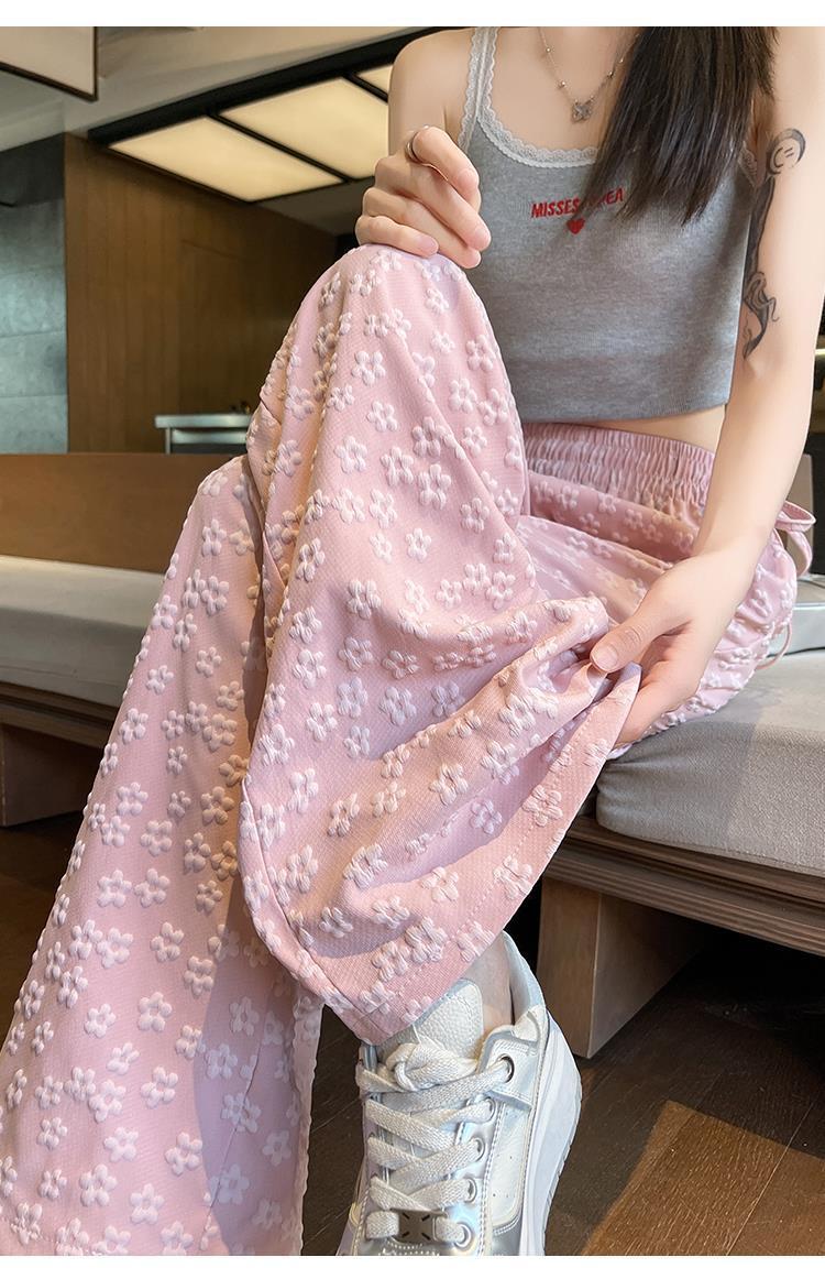 Pantalones de Verano Delgados de Pierna Ancha para Mujer con Estampado Floral Transfronterizo, Modernos, Adelgazantes, de Cintura Alta, Estilo Versátil, Pantalones Casuales, Pantalones Deportivos
