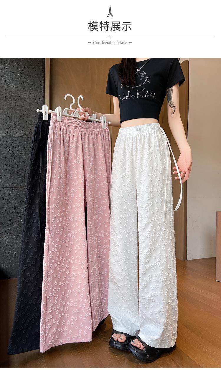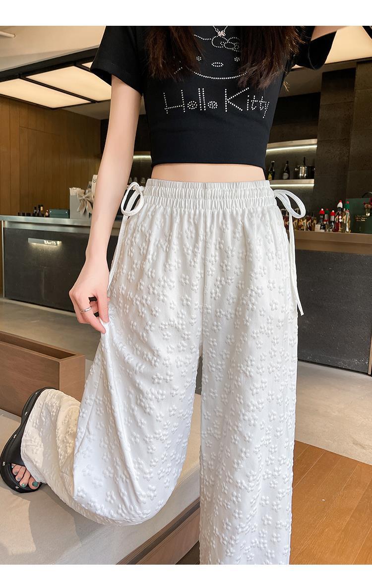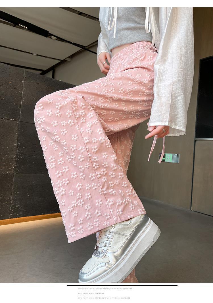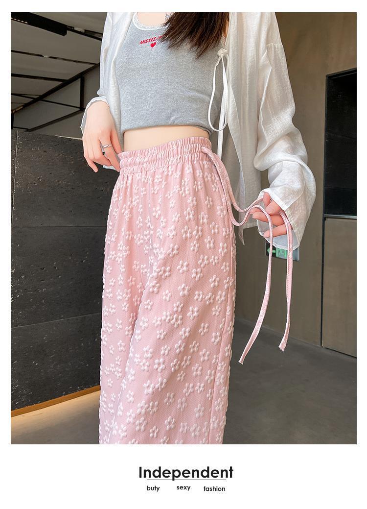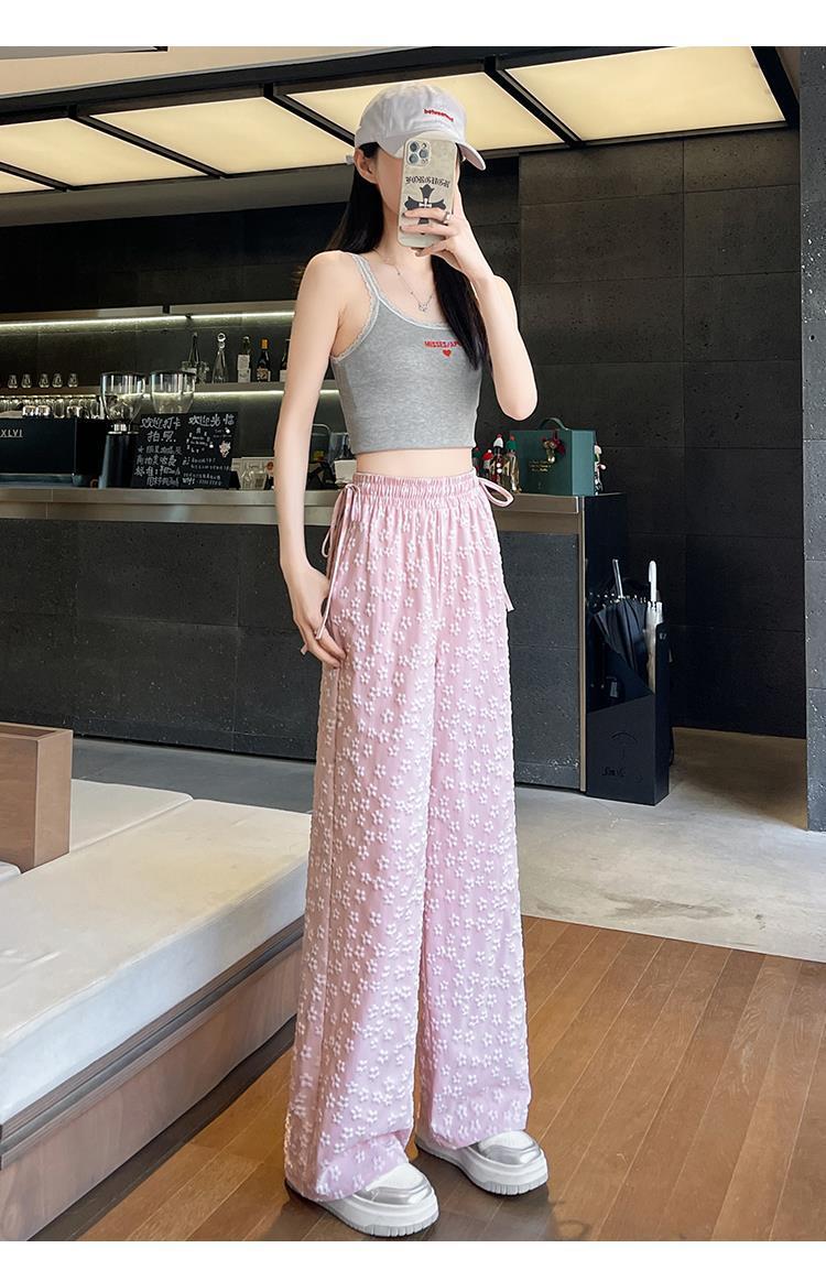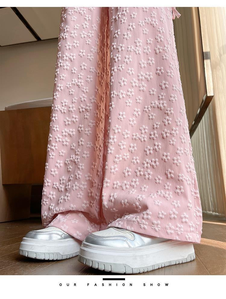 Pantalones de Verano Delgados de Pierna Ancha para Mujer con Estampado Floral Transfronterizo, Modernos, Adelgazantes, de Cintura Alta, Estilo Versátil, Pantalones Casuales, Pantalones Deportivos