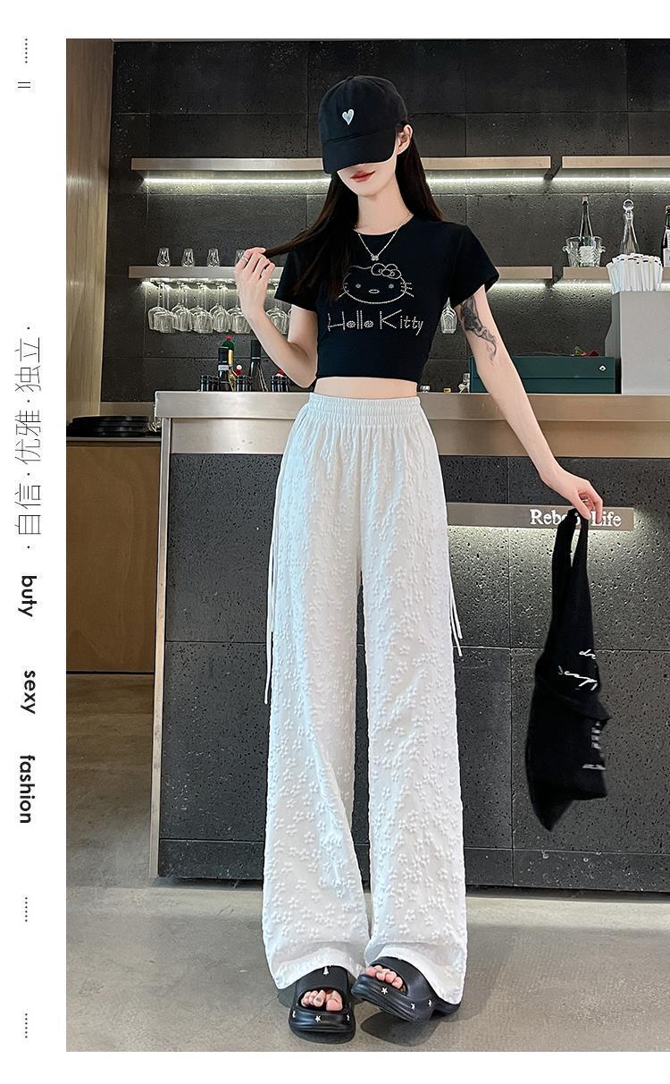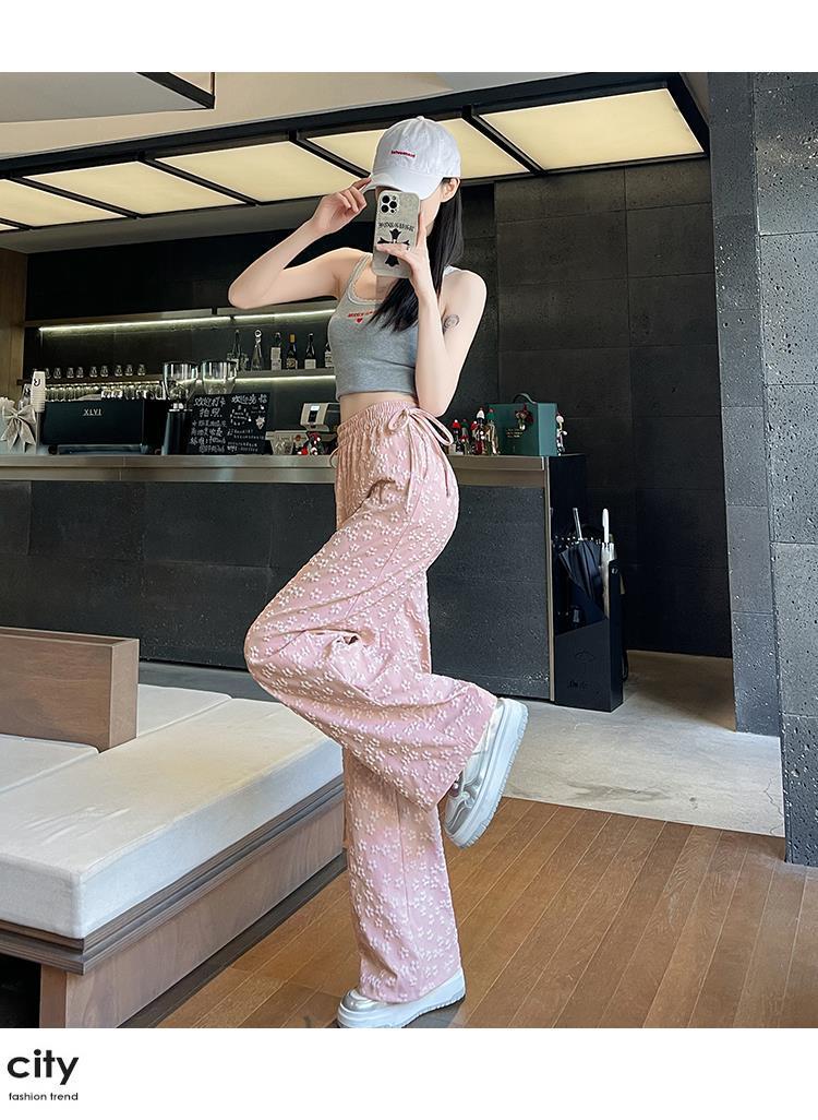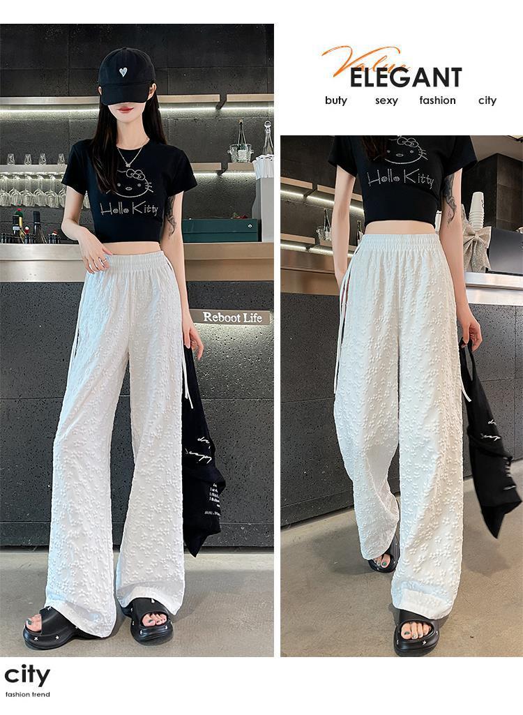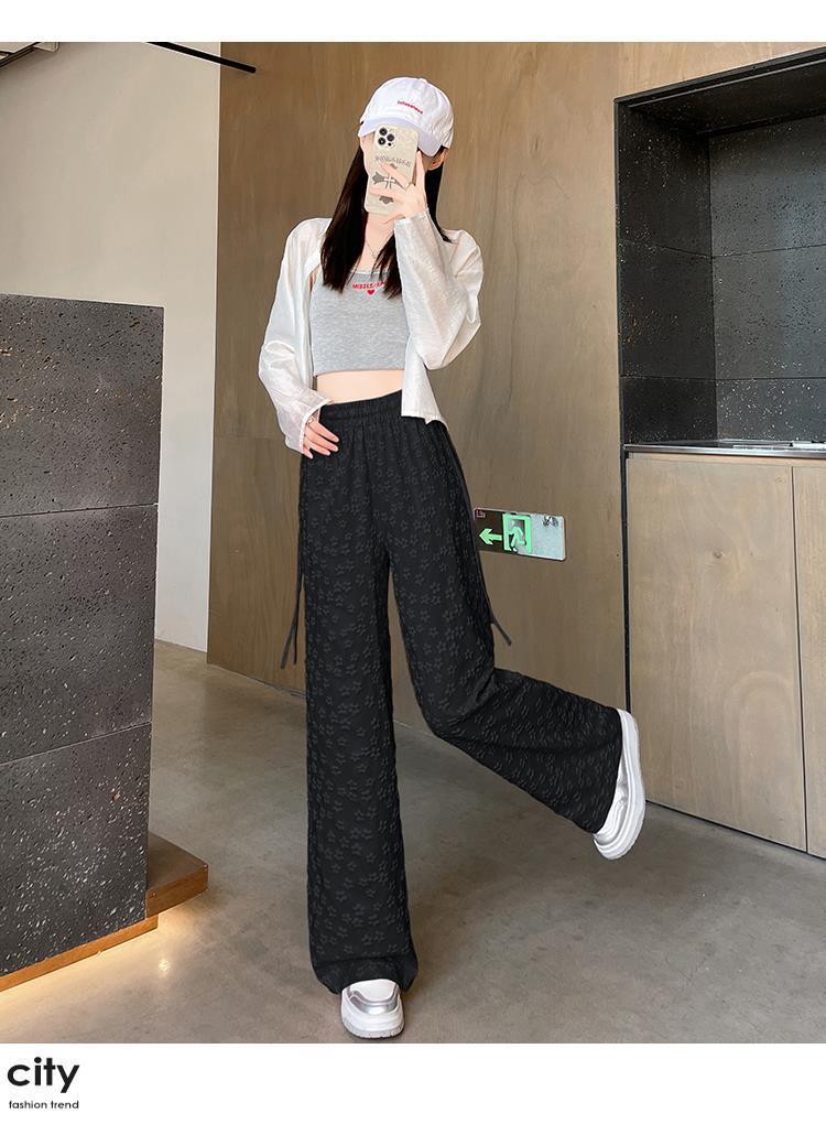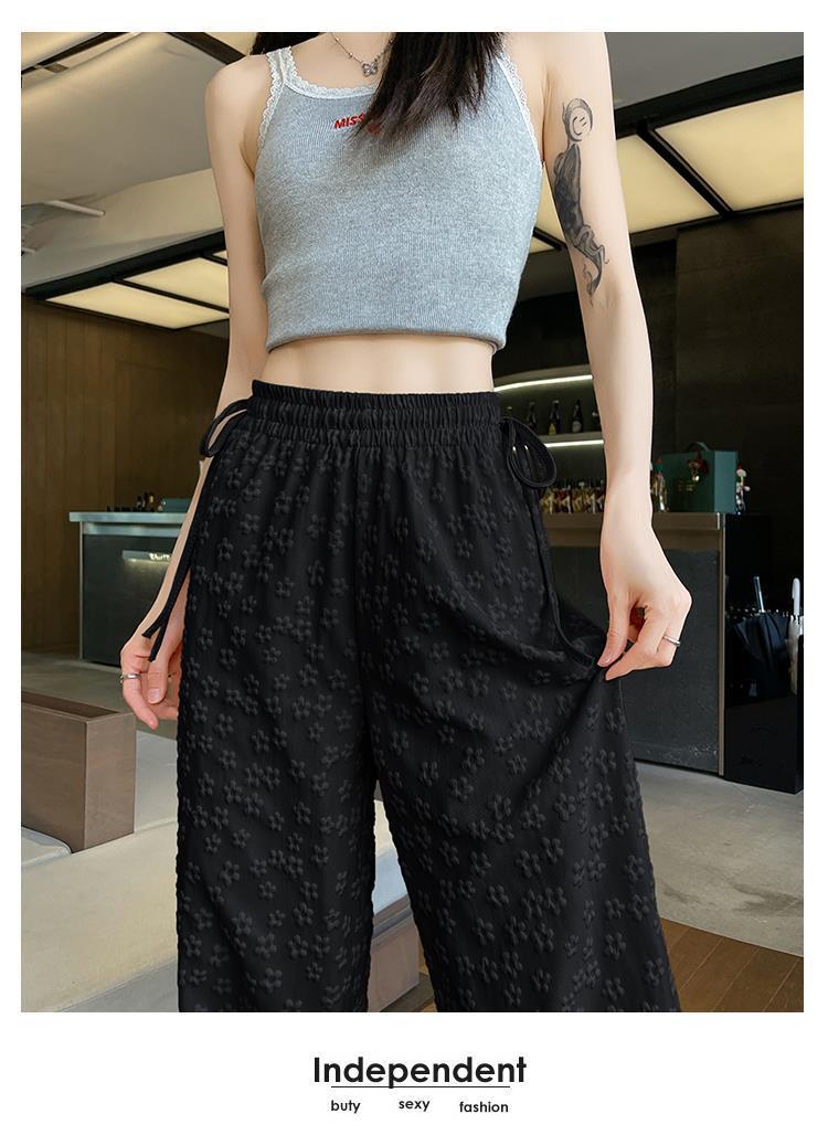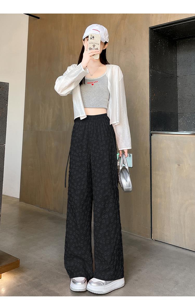 Pantalones de Verano Delgados de Pierna Ancha para Mujer con Estampado Floral Transfronterizo, Modernos, Adelgazantes, de Cintura Alta, Estilo Versátil, Pantalones Casuales, Pantalones Deportivos
