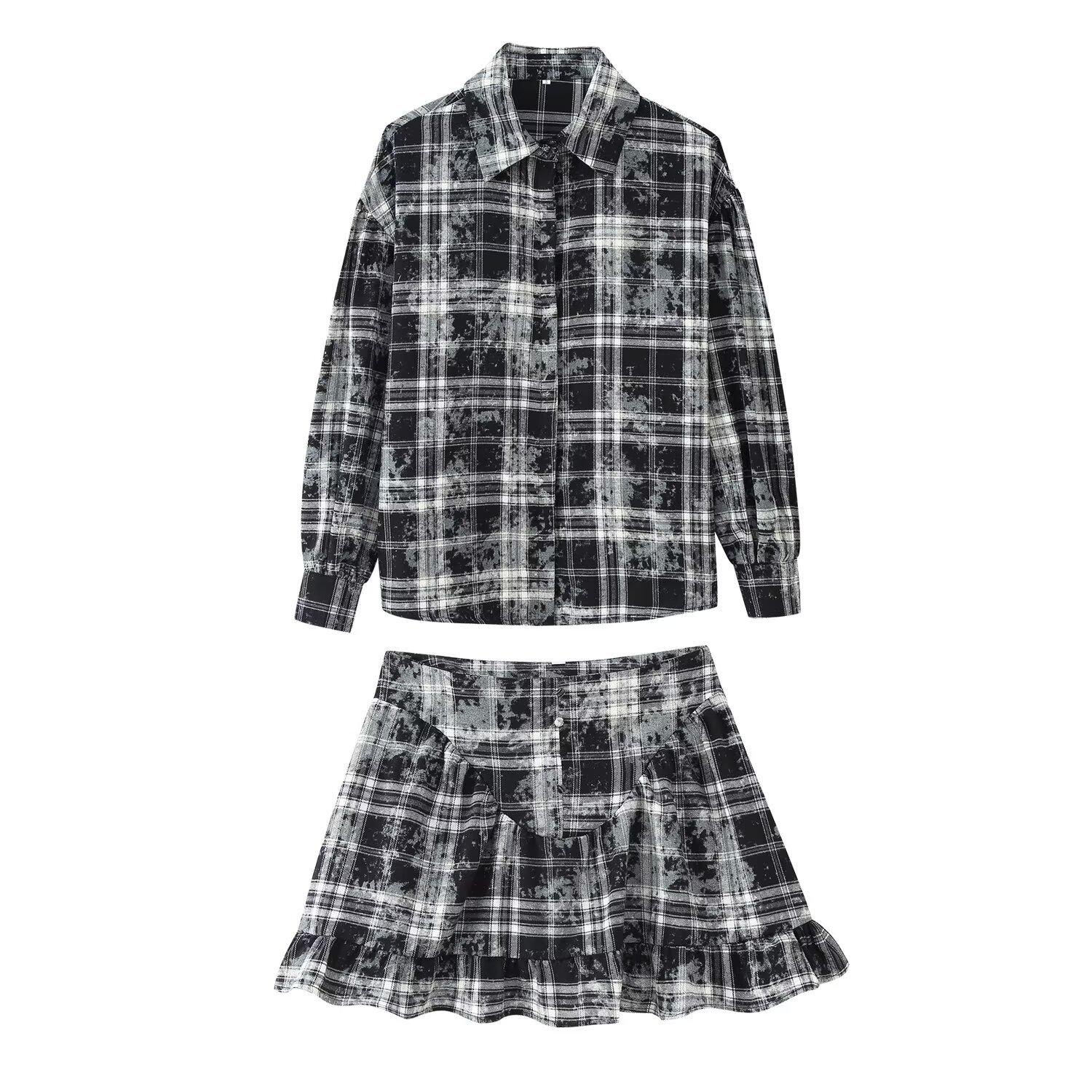 Ropa de Mujer de Estilo Europeo y Americano para Comercio Exterior Set de Camisa con Solapa y Volantes y Falda Corta de Venta Caliente Transfronteriza