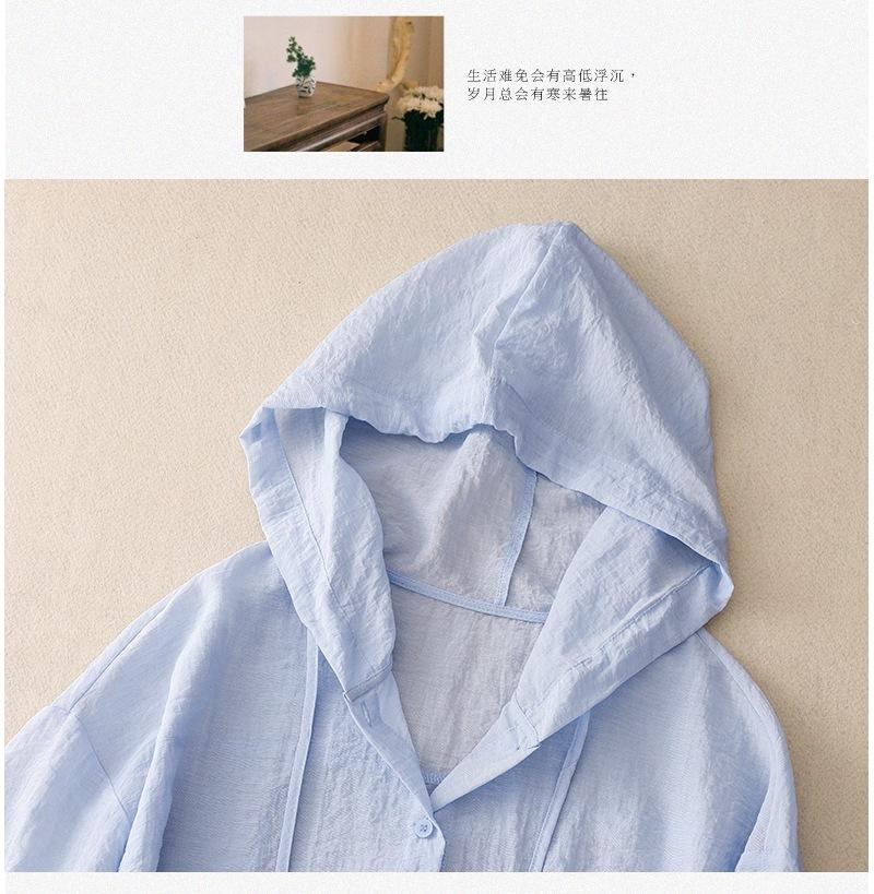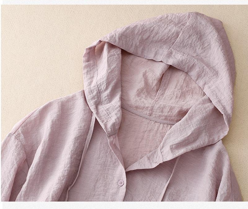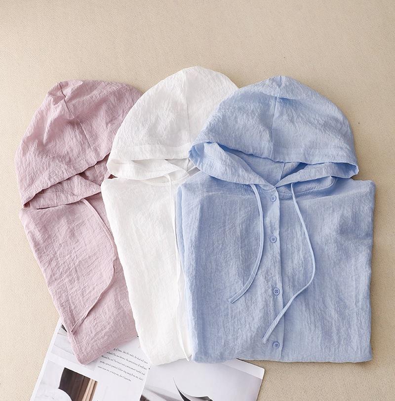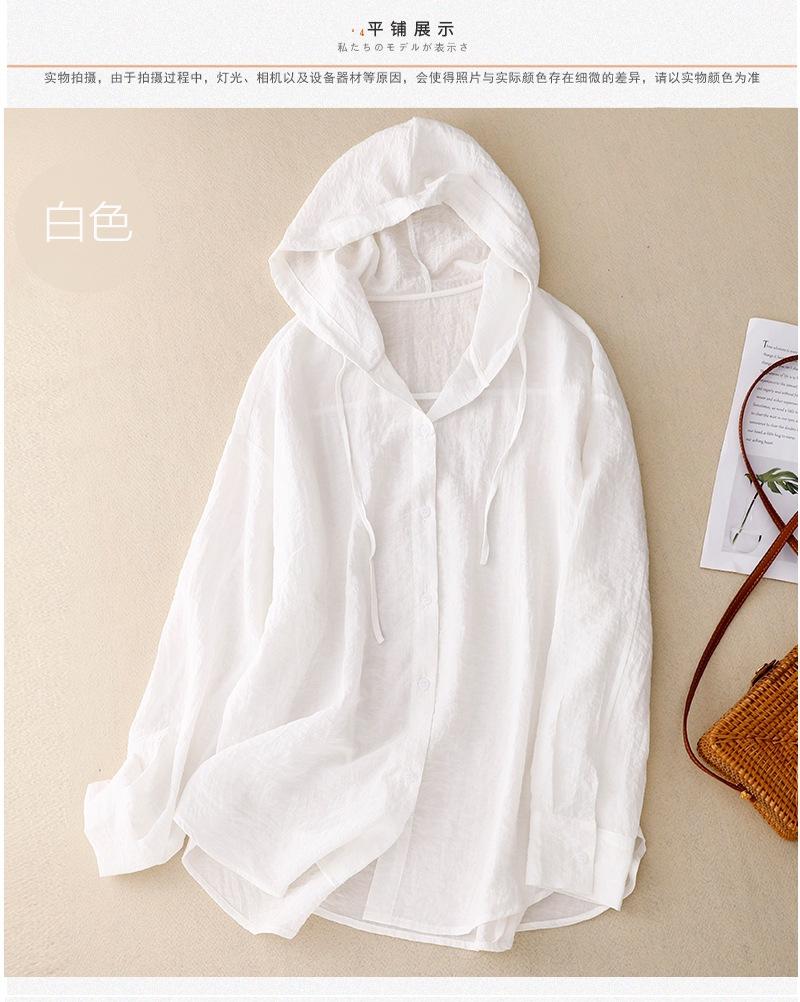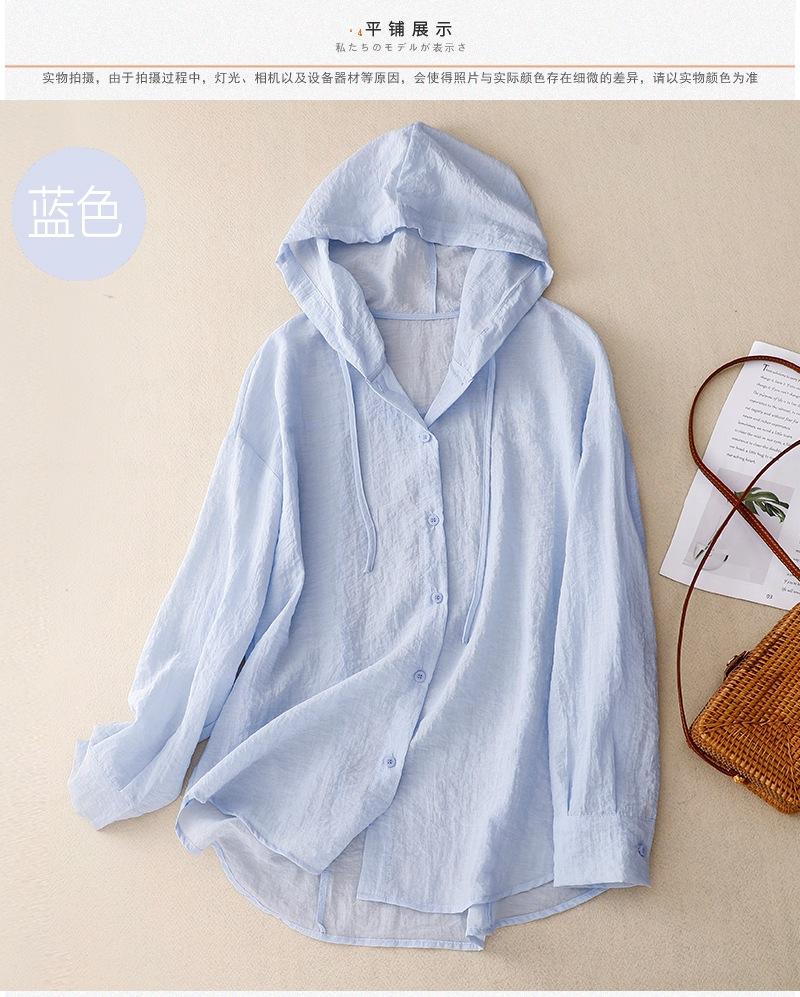Ropa Nueva con Capucha para Protección Solar Camisa de Manga Larga para Aire Acondicionado Chaqueta Fina Holgada Casual Top de Playa para Mujer