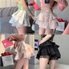 Falda de Encaje Abullonada para Mujer Verano Cintura Alta Ajustada Rosa Falda Pastel Falda Corta A-Line Estilo Ballet Falda Plisada