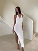 Vestido de Playa Europeo y Americano para las Vacaciones 2025 Nuevo Vestido de Punto Sexy Spice Girl Transfronterizo Ajustado con Abertura Vestido Slip para Mujer