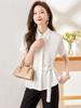 Camiseta de gasa de manga corta para mujer, verano 2025, nueva, elegante, a la moda, para ir al trabajo, adelgazante, cuello redondo, top combinable para tallas pequeñas