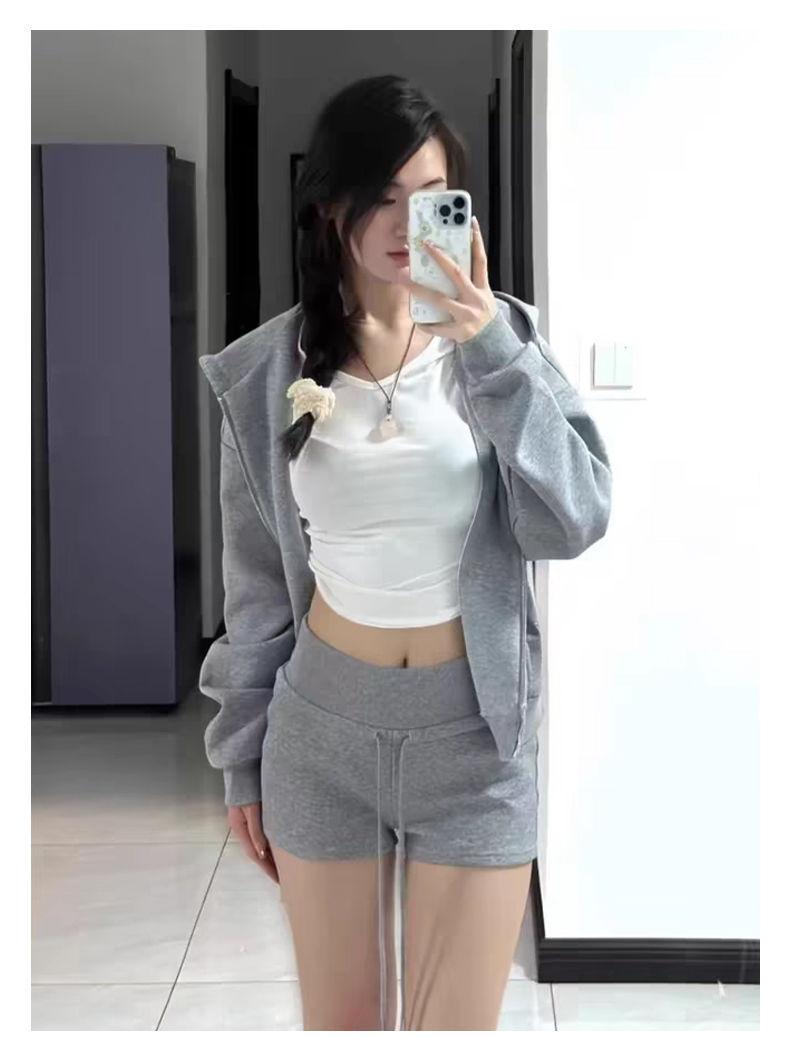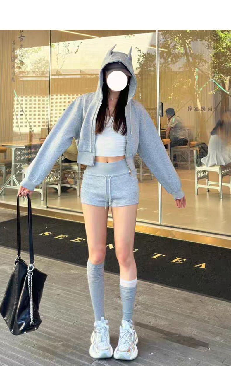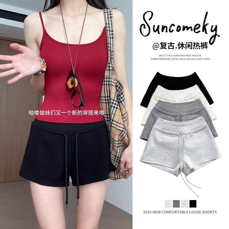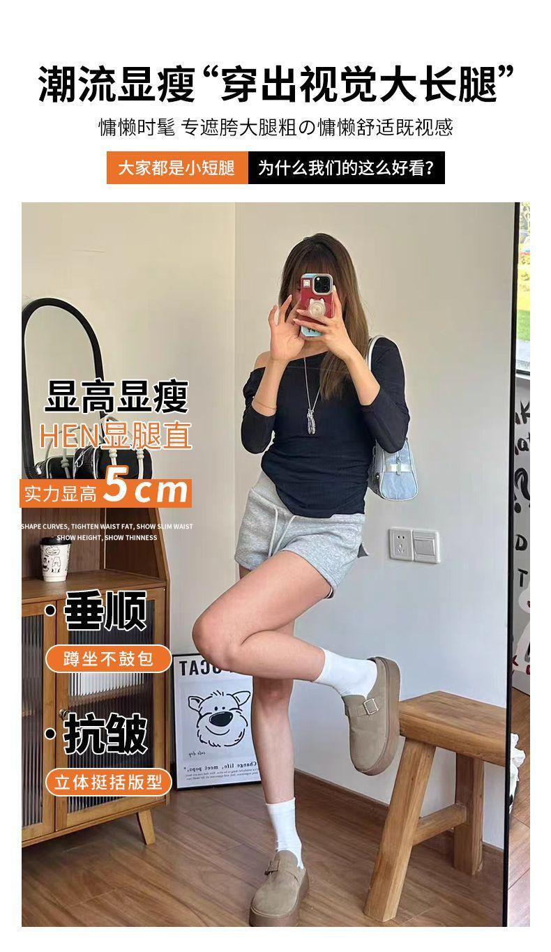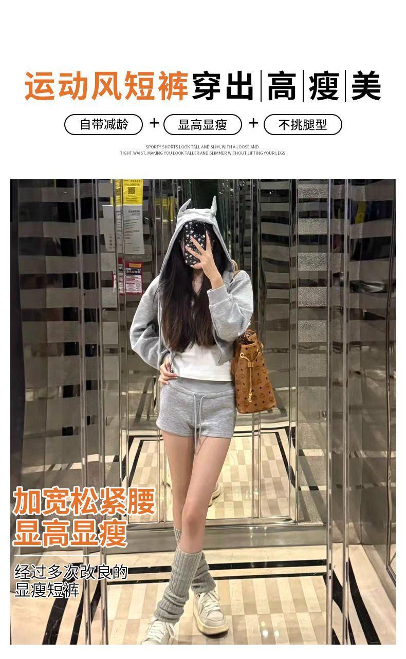 Compra Shorts Casuales Deportivos Grises Americanos para Mujer Verano 2025 Nuevo Estilo Sueltos Cintura Alta Adelgazantes Cortos Pantalones Rectos al por mayor en Joom.pro