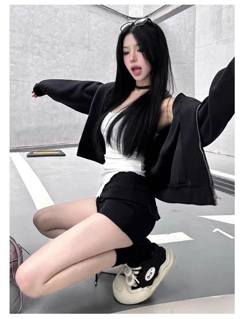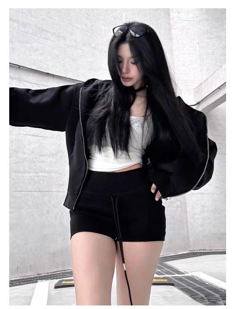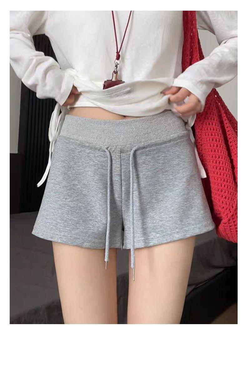 Shorts Casuales Deportivos Grises Americanos para Mujer Verano 2025 Nuevo Estilo Sueltos Cintura Alta Adelgazantes Cortos Pantalones Rectos
