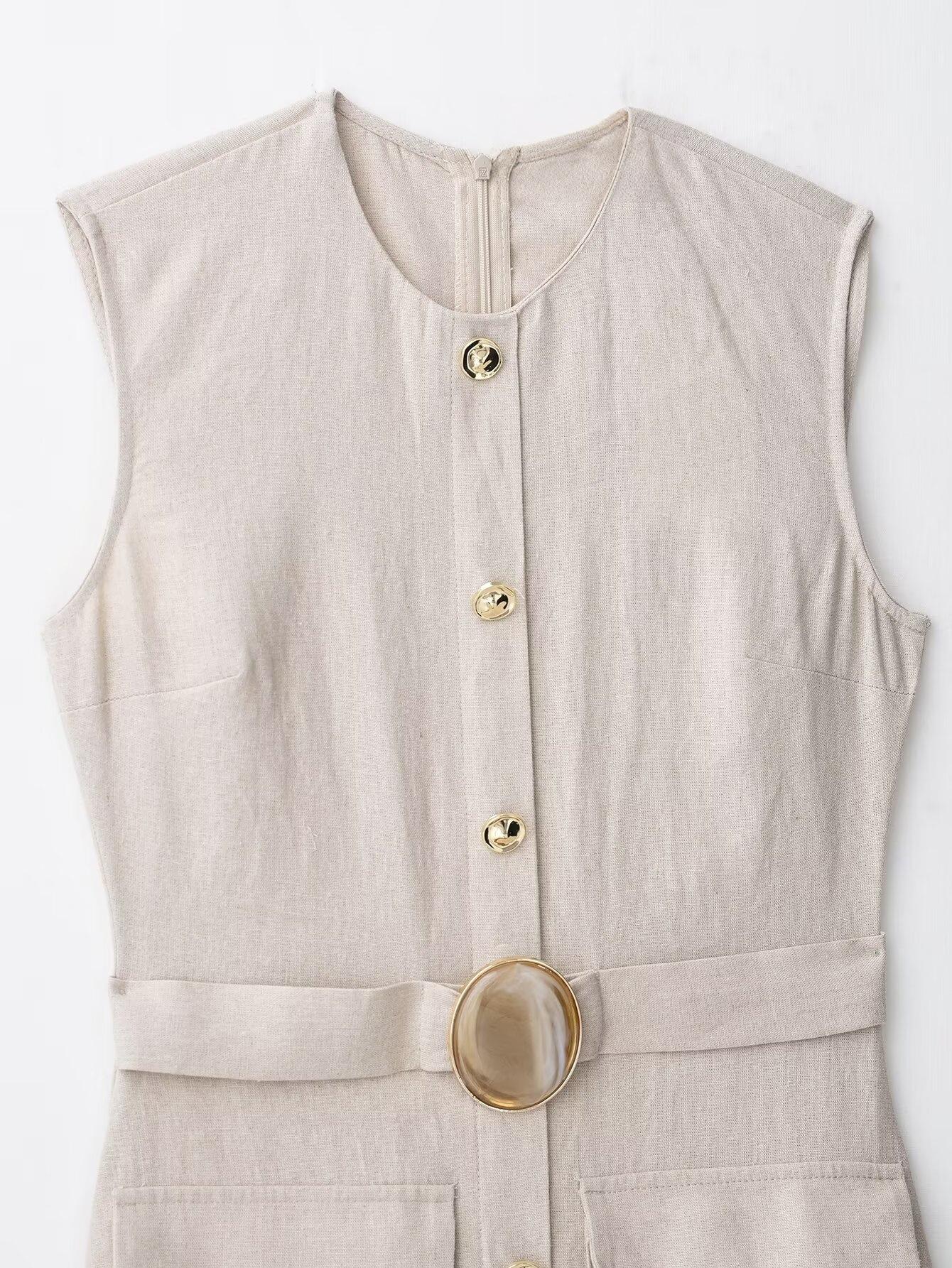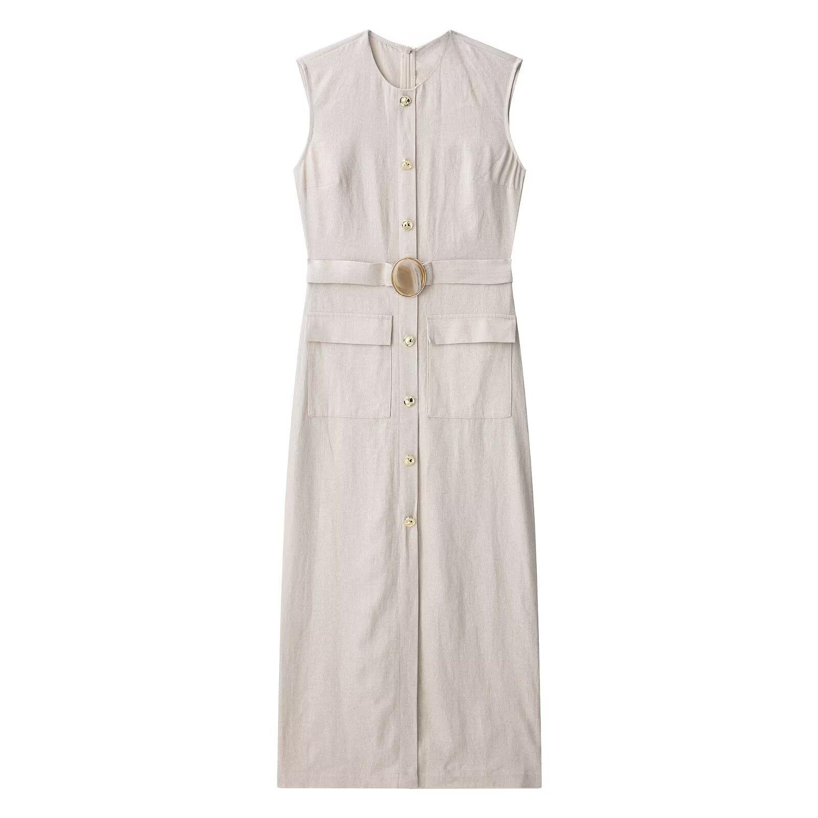 Ropa Europea y Americana Transfronteriza 2025 Nueva Moda de Verano Casual Vestido Midi con Hebilla 3721939