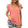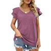Ropa de Mujer Transfronteriza Europea y Americana 2024 Amazon Verano Nuevo Color Puro Cuello V Mangas Volantes Doble Capa Top Suelto Camiseta