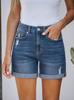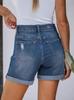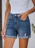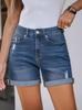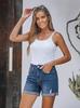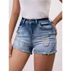 Suministro Transfronterizo Europeo y Americano Nuevo Verano para Mujer Rectos Ajustados con Dobladillo Deshilachado Shorts de Mezclilla