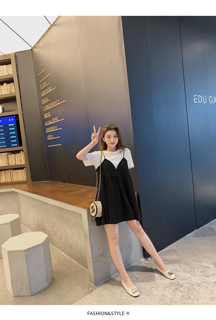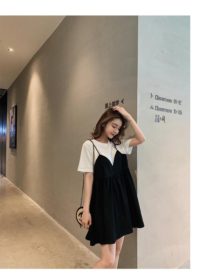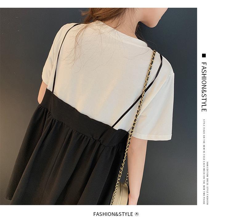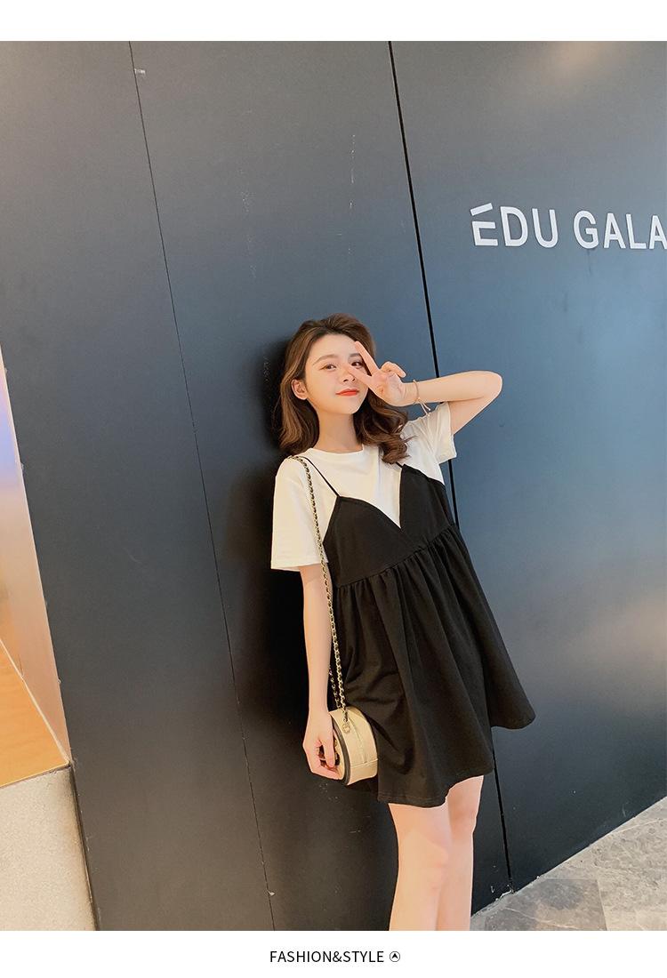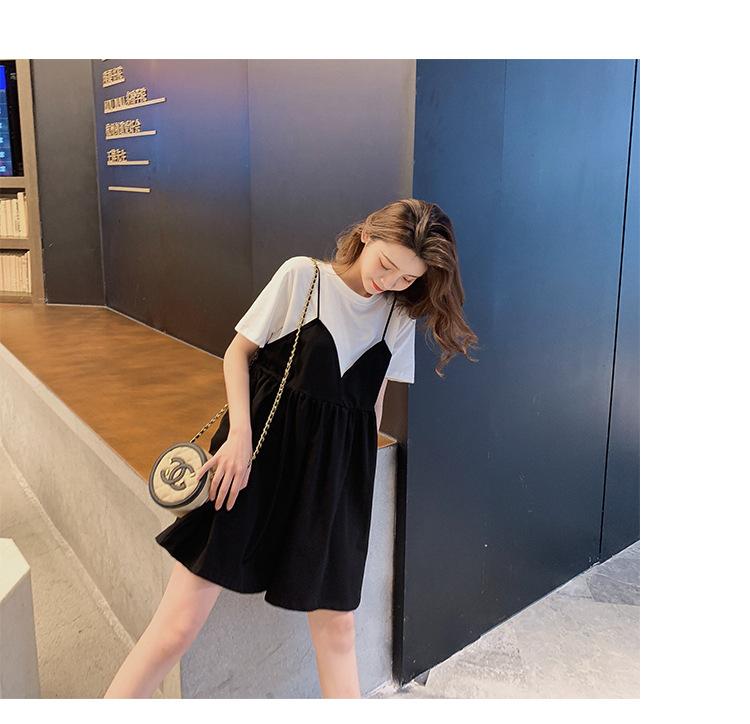 Ropa de Maternidad Vestido Talla Grande Verano Largo Medio Top de Maternidad Suelto Falso Dos Piezas Manga Corta Falda con Tirantes Falda Baby Doll