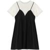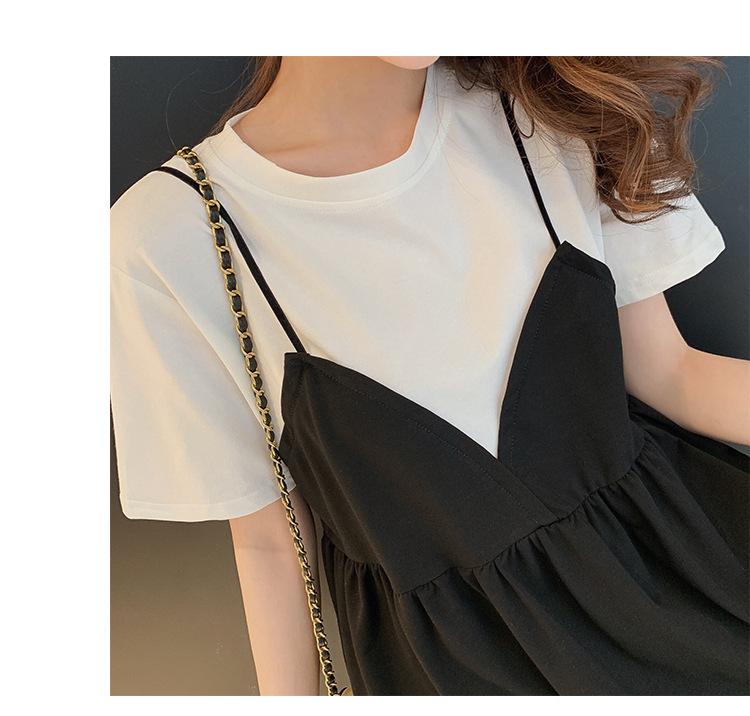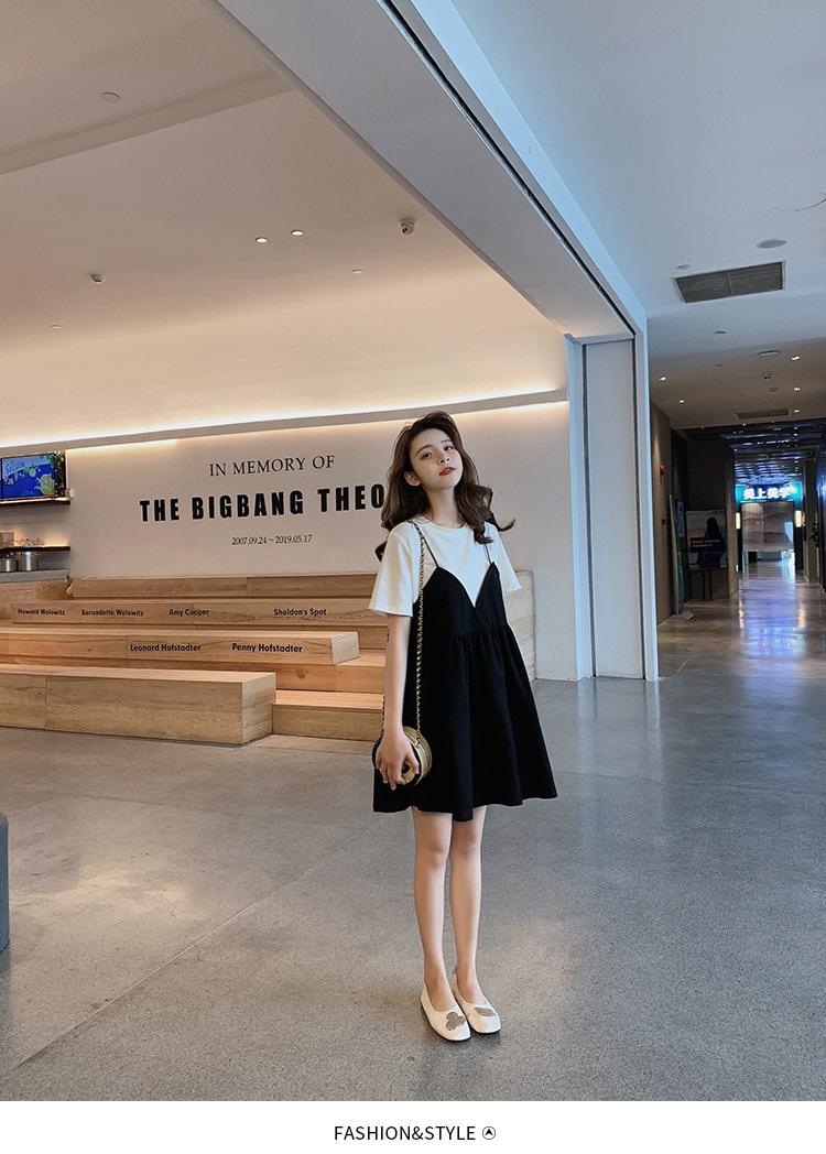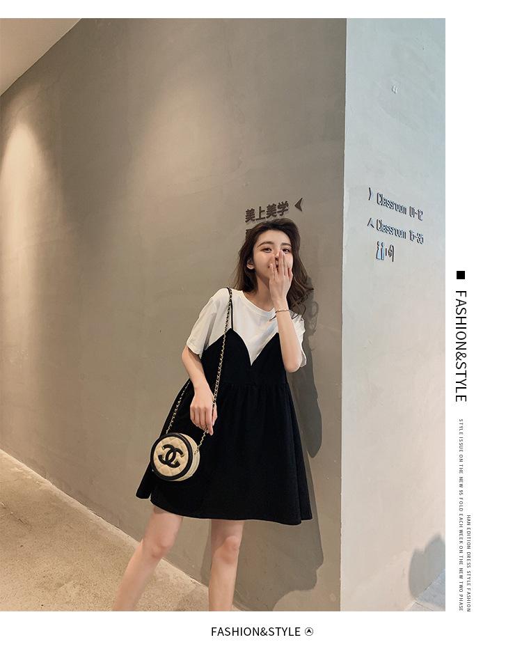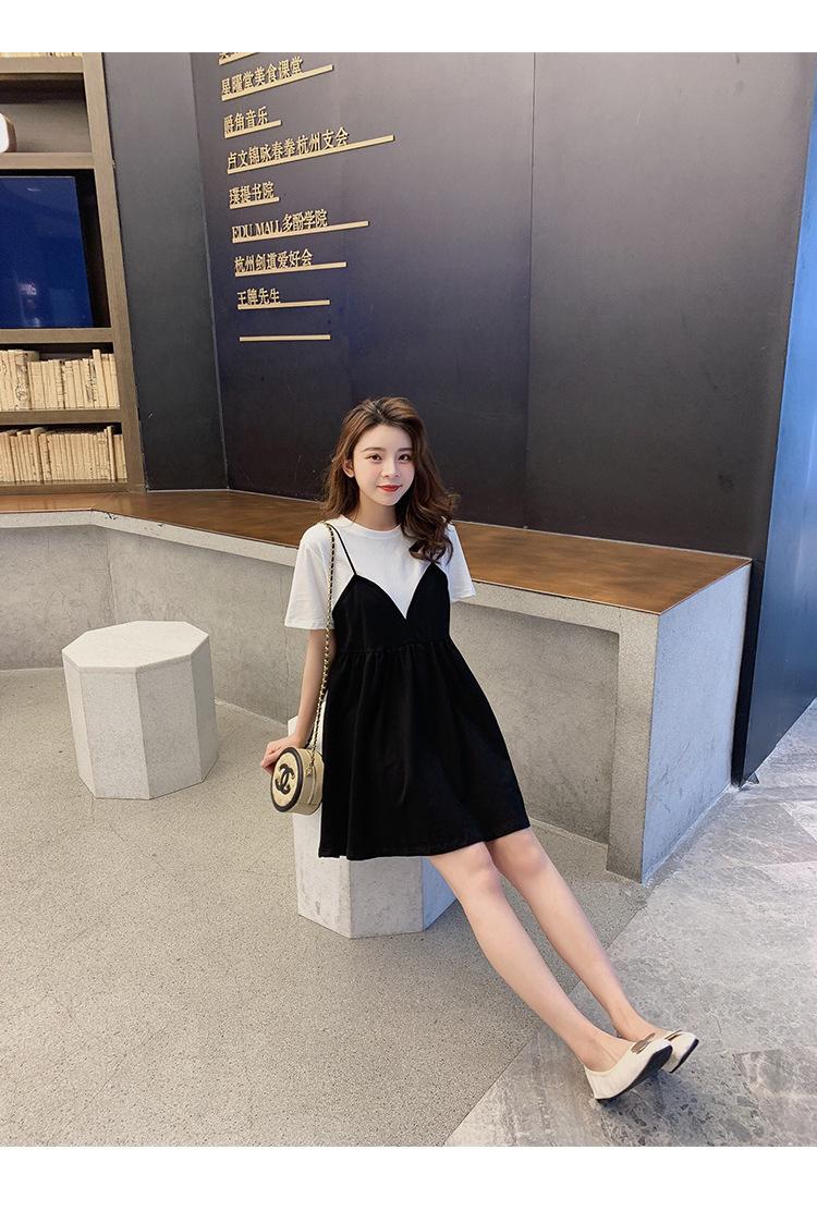 Ropa de Maternidad Vestido Talla Grande Verano Largo Medio Top de Maternidad Suelto Falso Dos Piezas Manga Corta Falda con Tirantes Falda Baby Doll
