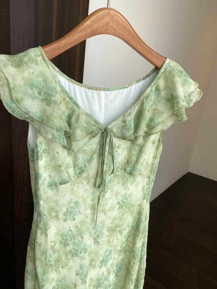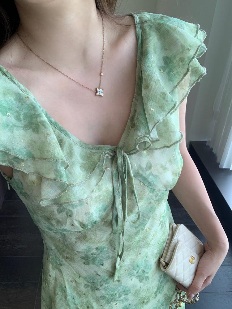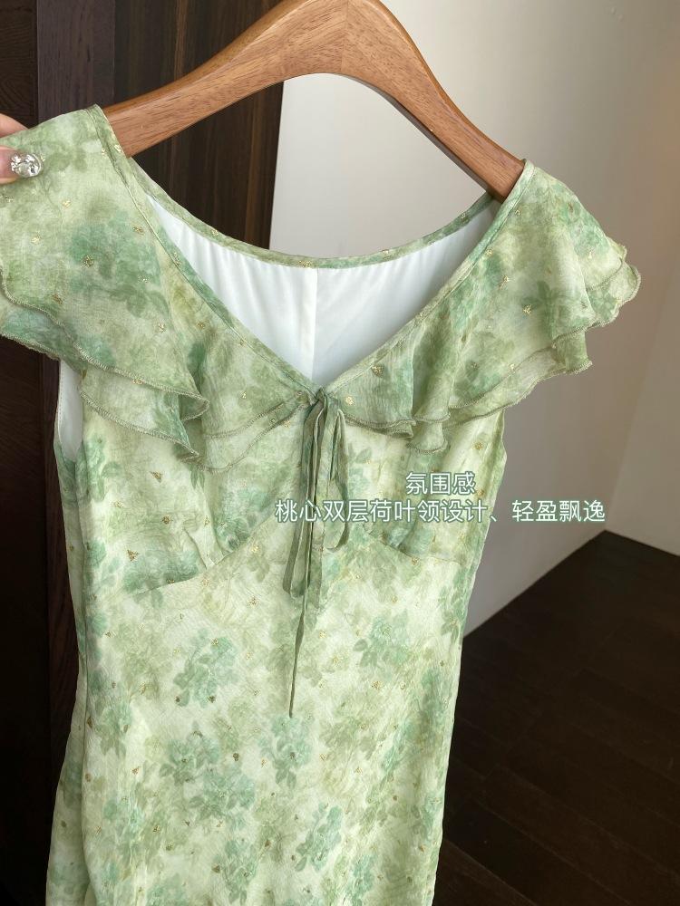 Diseño de cuello con volantes de doble capa de corazón de durazno, ¡ligero y aireado!