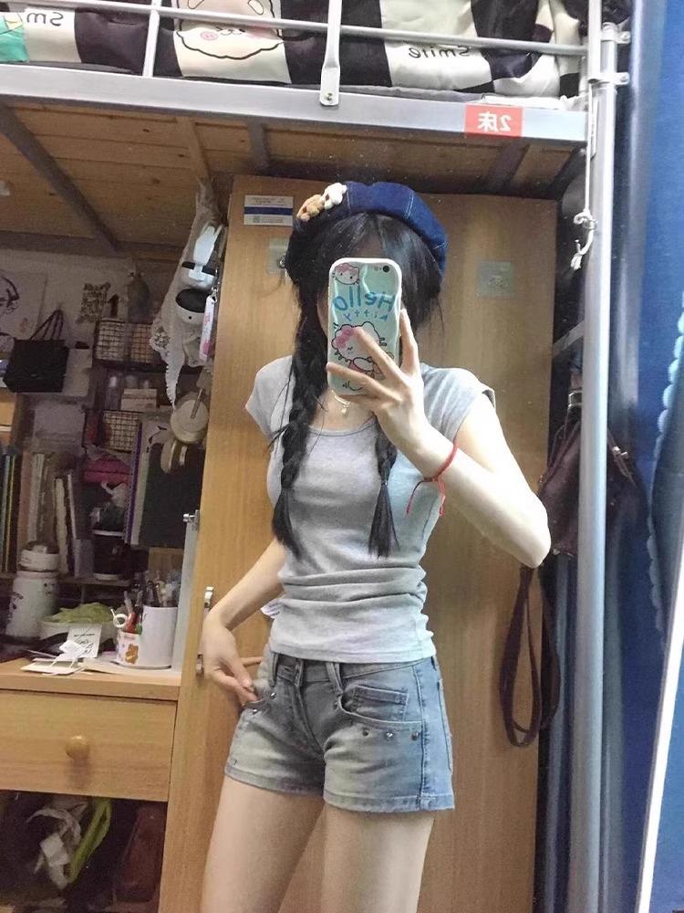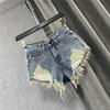 Talla Grande Americano Retro Sexy Shorts de Mezclilla de Cintura Baja para Mujer Verano Nuevo Estilo Pequeños Línea A Cubre Caderas Remache Pantalones Cortos Hot