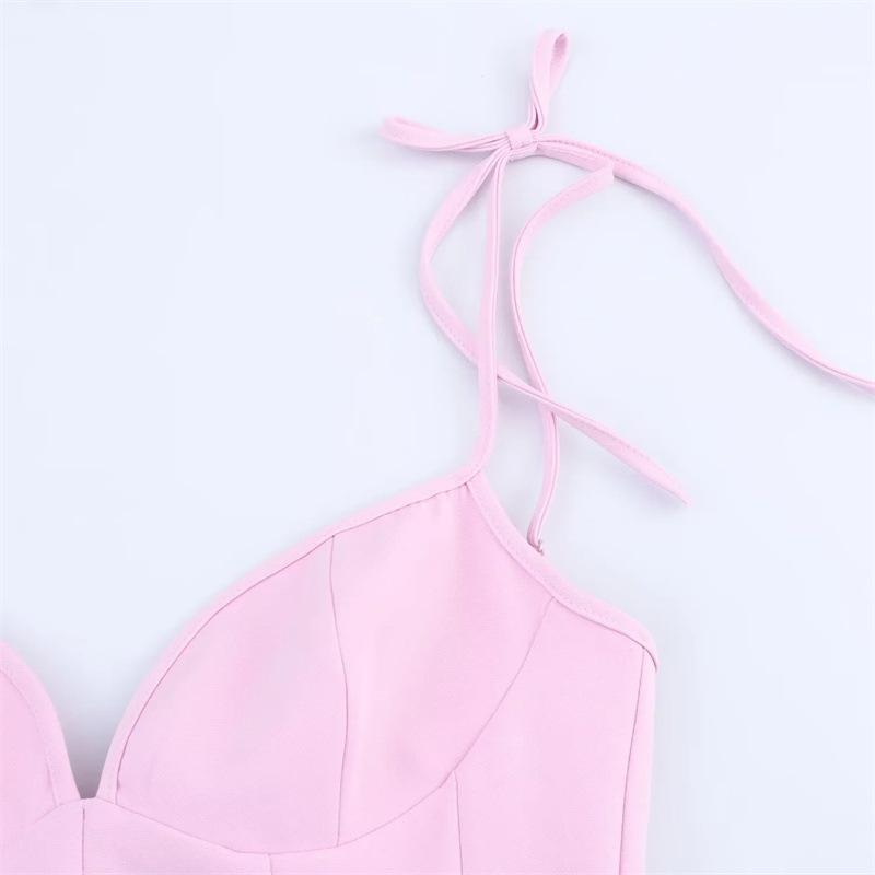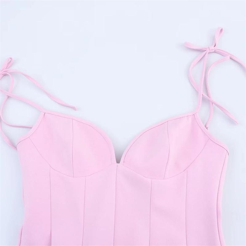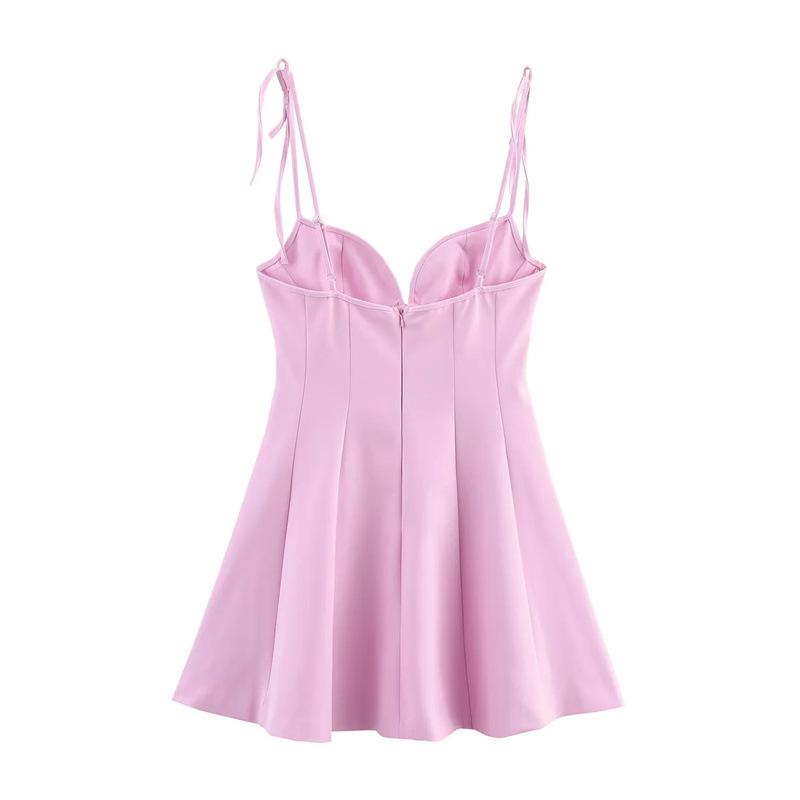 Vestido Sexy Estilo Europeo y Americano con Cuello en V Decorado con Lazo Falda de Tirantes Verano Cintura Adelgazante Sexy Falda Corta 3152310