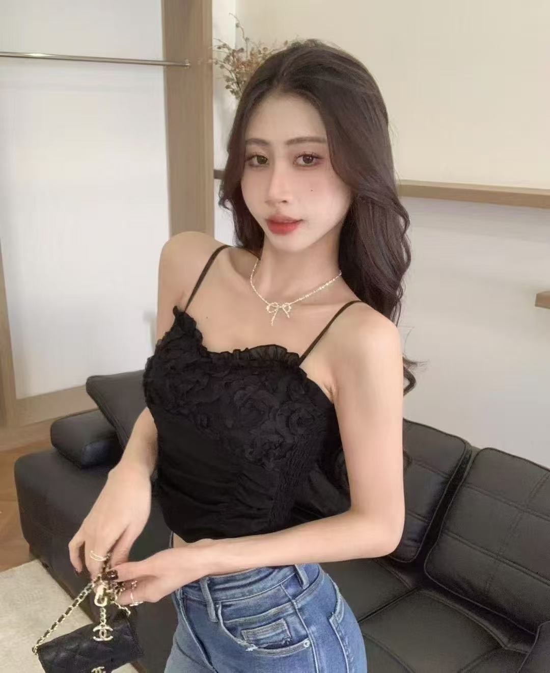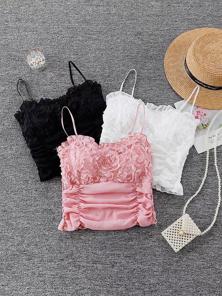 Primavera y Verano Nuevo Camisola de Flores para Mujer Ropa Exterior Ajustada Adelgazante Base Dulce Chica Picante Hermoso Tirante Top con Almohadilla en el Pecho