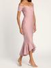 Europeo y Americano 2025 Nuevo Vestido de Moda para Mujer Elegante Ajustado Color Puro Sexy Cuello de un Hombro Cubre Caderas Cola de Pez