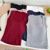 Chaleco cálido grueso con forro polar de cuello cuadrado para otoño e invierno para mujer con almohadillas en el pecho, camiseta base de una pieza para llevar debajo, top entallado y adelgazante para mujer