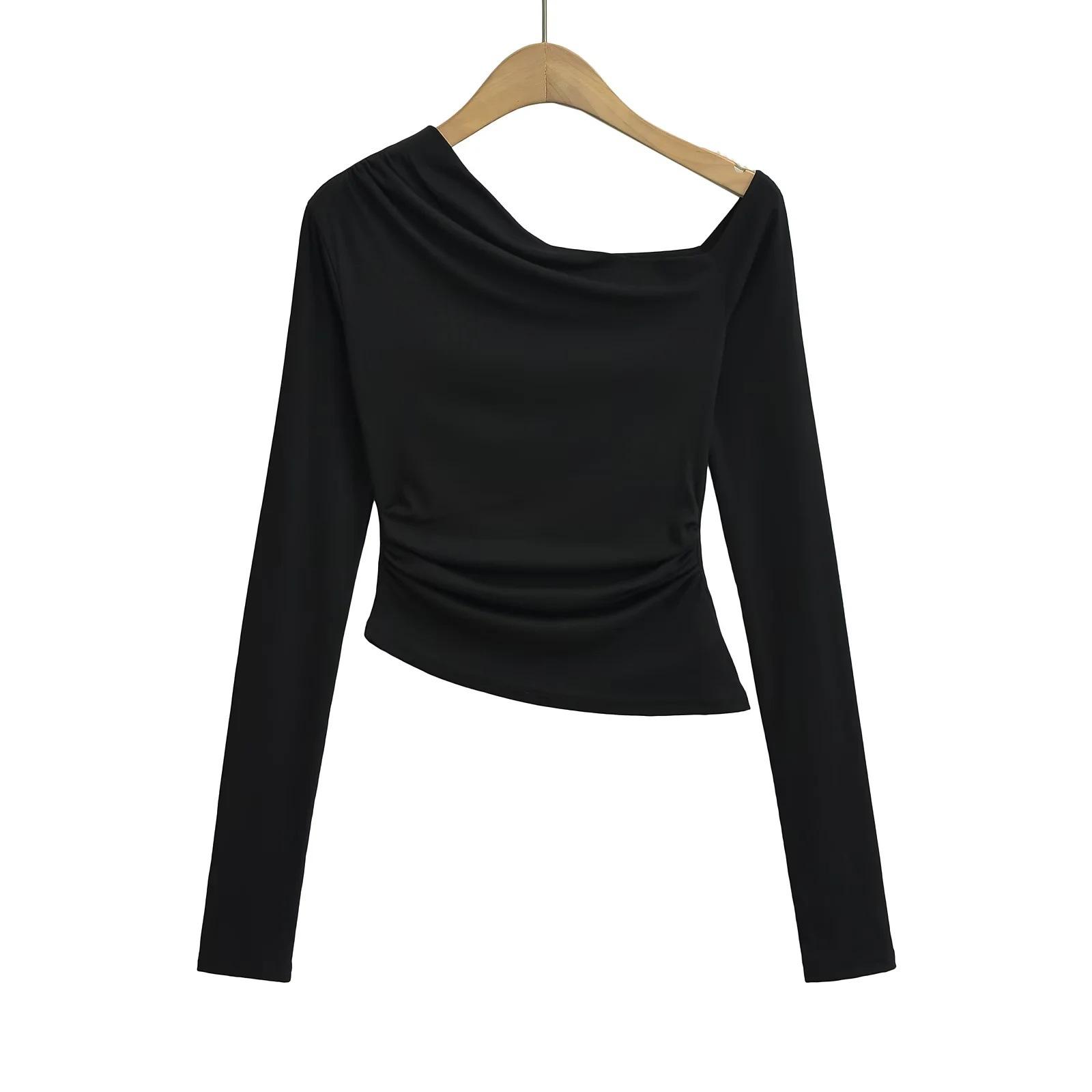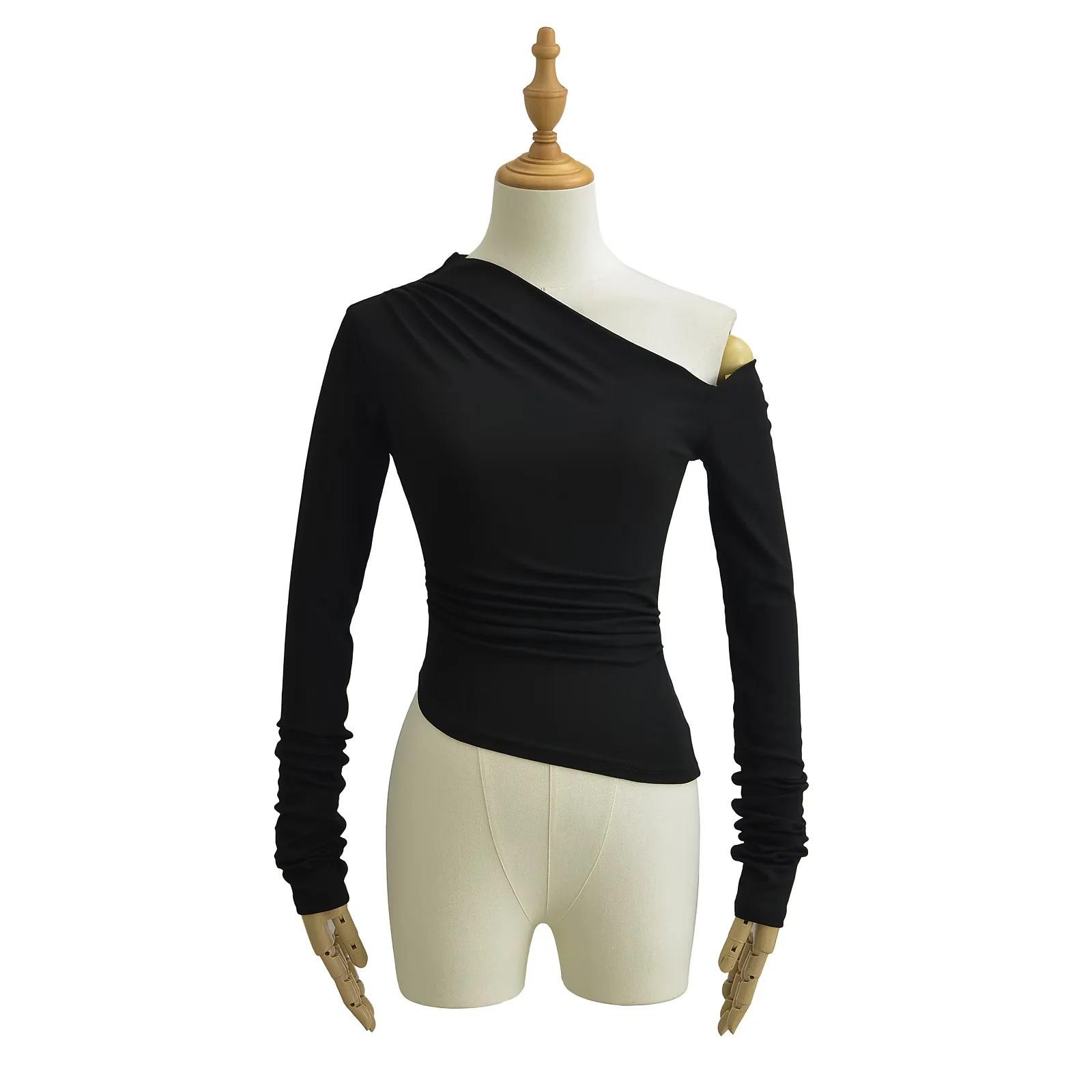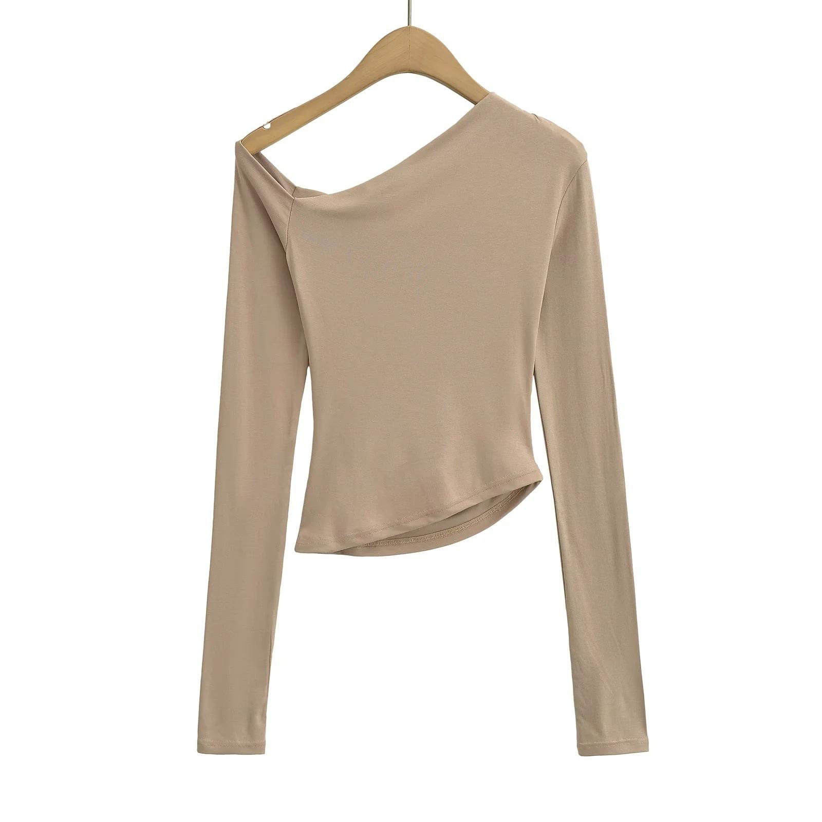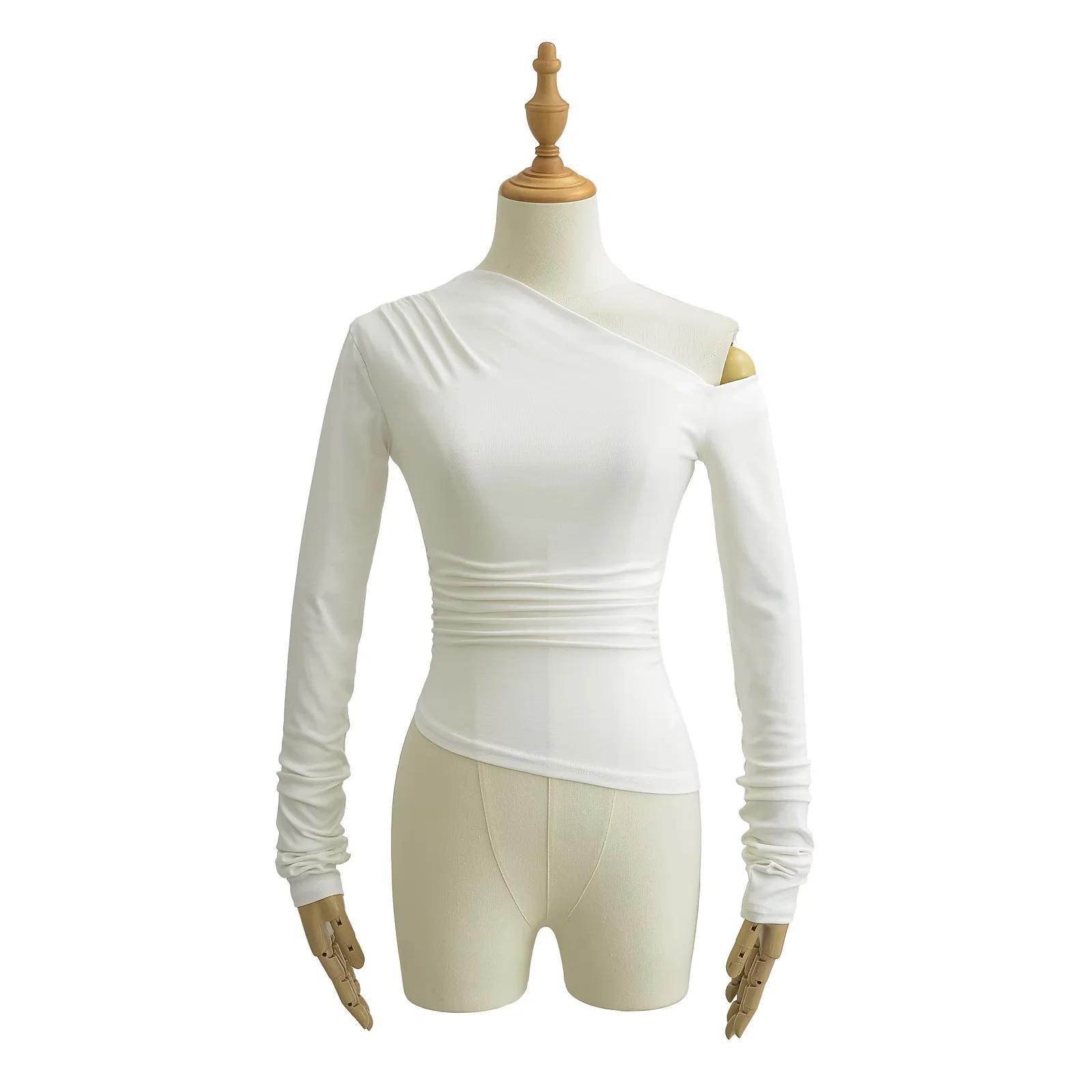 2025 Verano Nuevo Deseo Puro Chica Sexy Camiseta Sexy Hombro Inclinado Diseño de Mujer Nicho Camiseta Corta de Fondo Top
