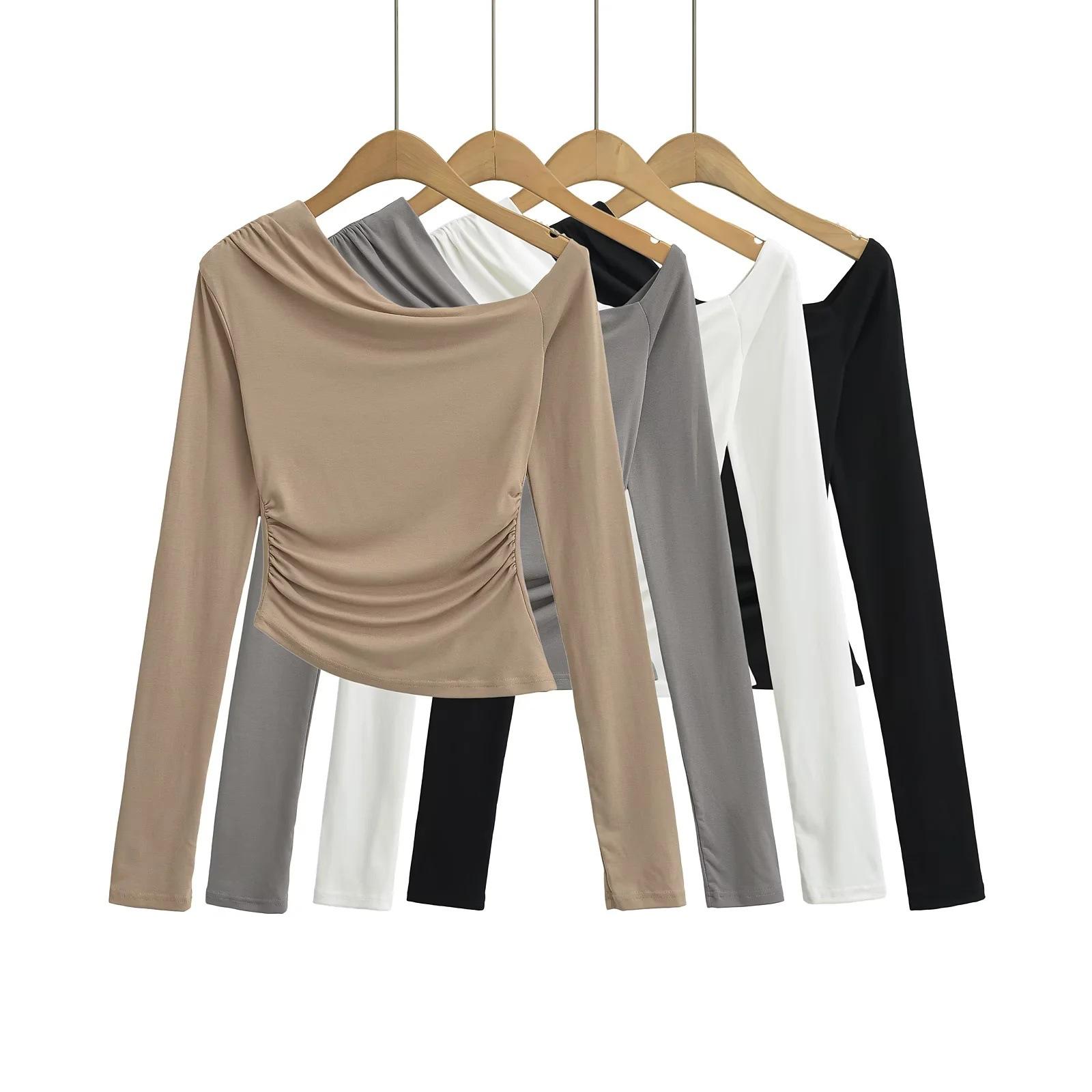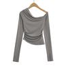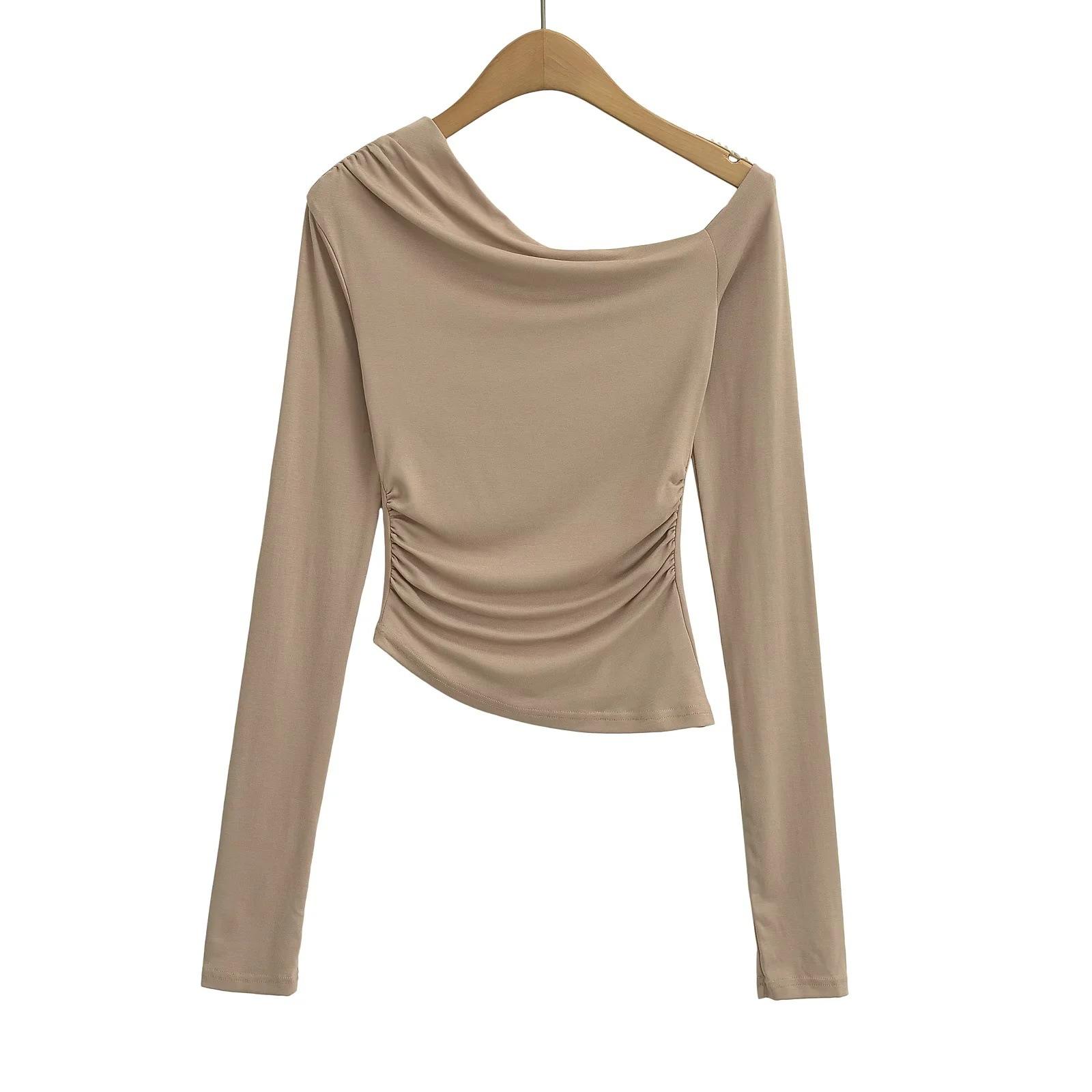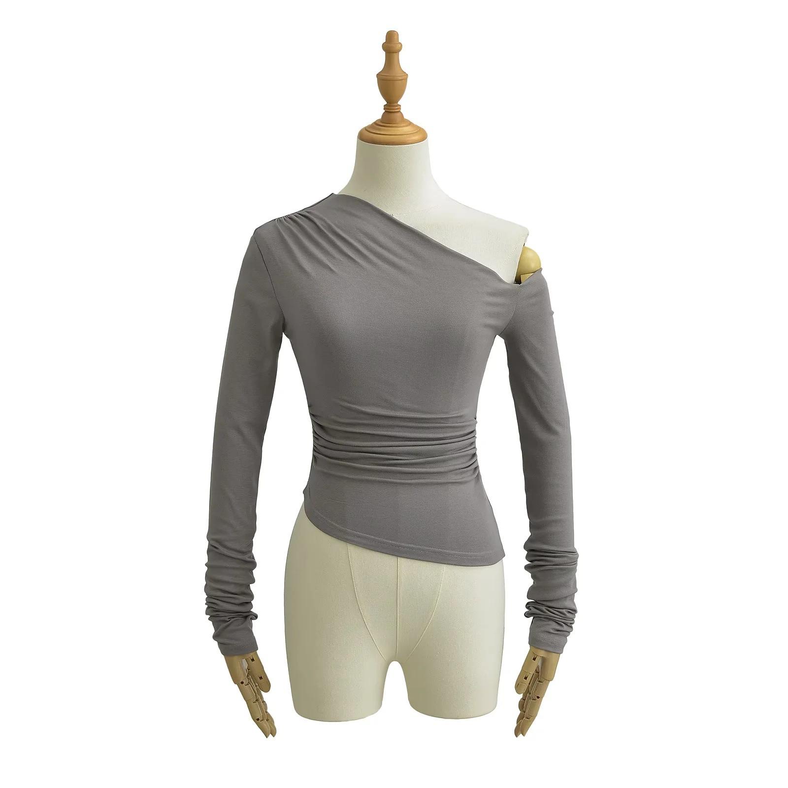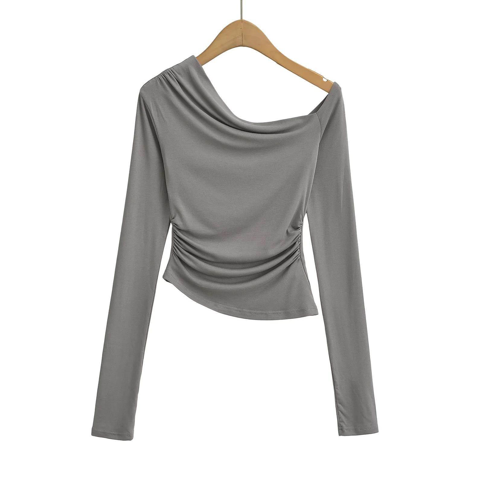 2025 Verano Nuevo Deseo Puro Chica Sexy Camiseta Sexy Hombro Inclinado Diseño de Mujer Nicho Camiseta Corta de Fondo Top