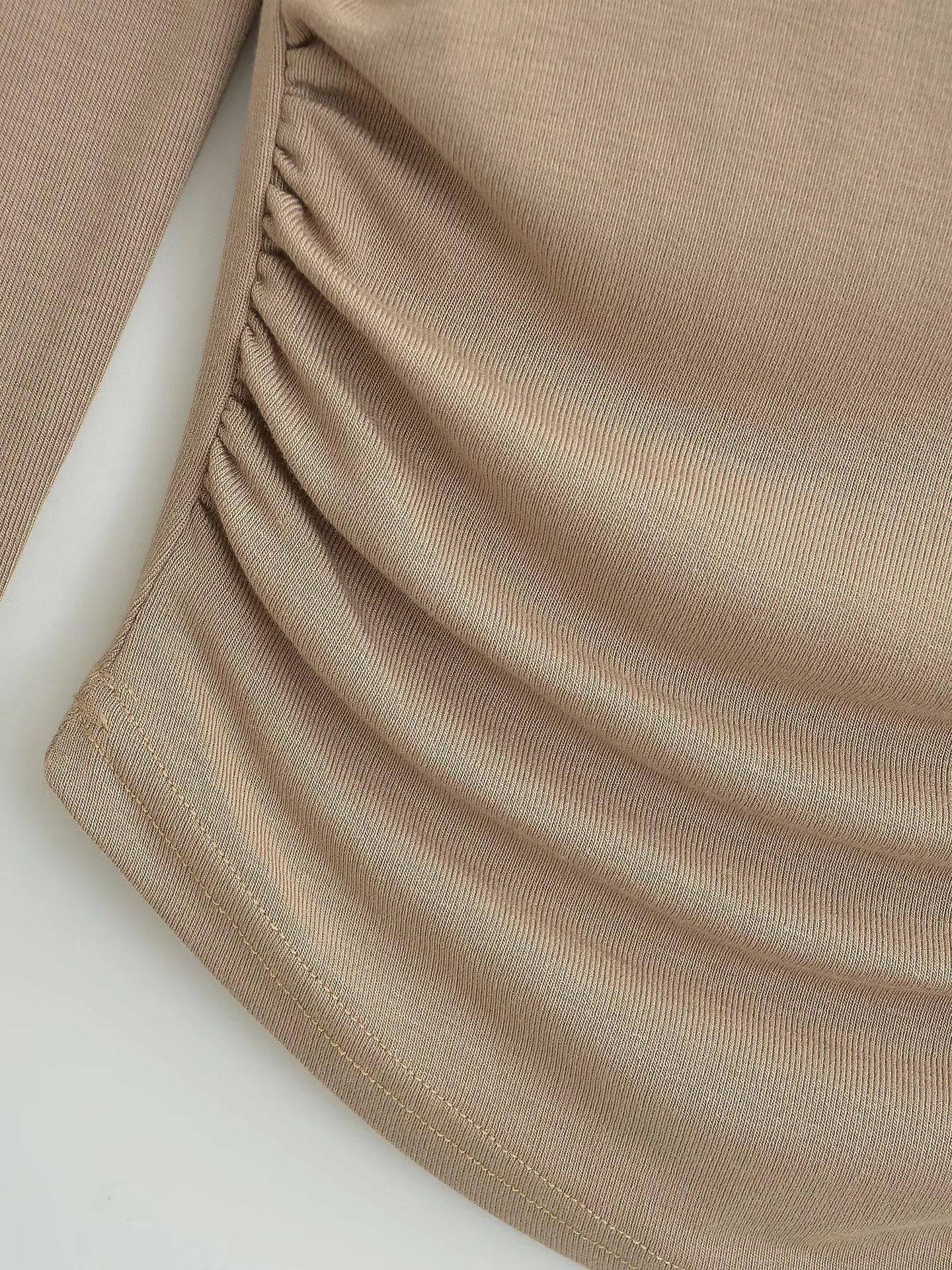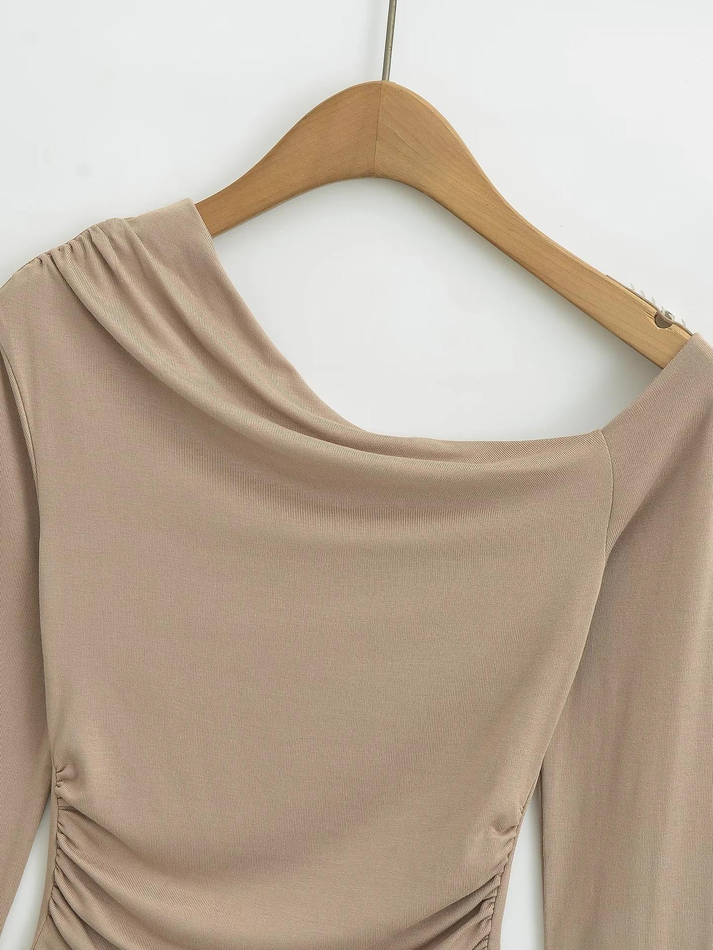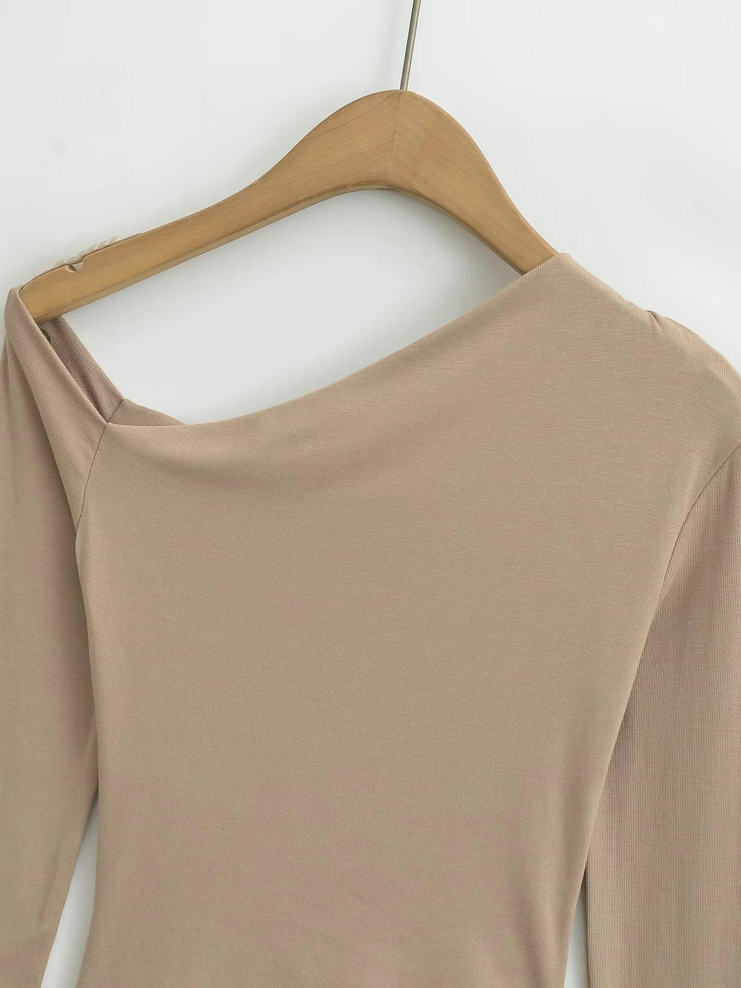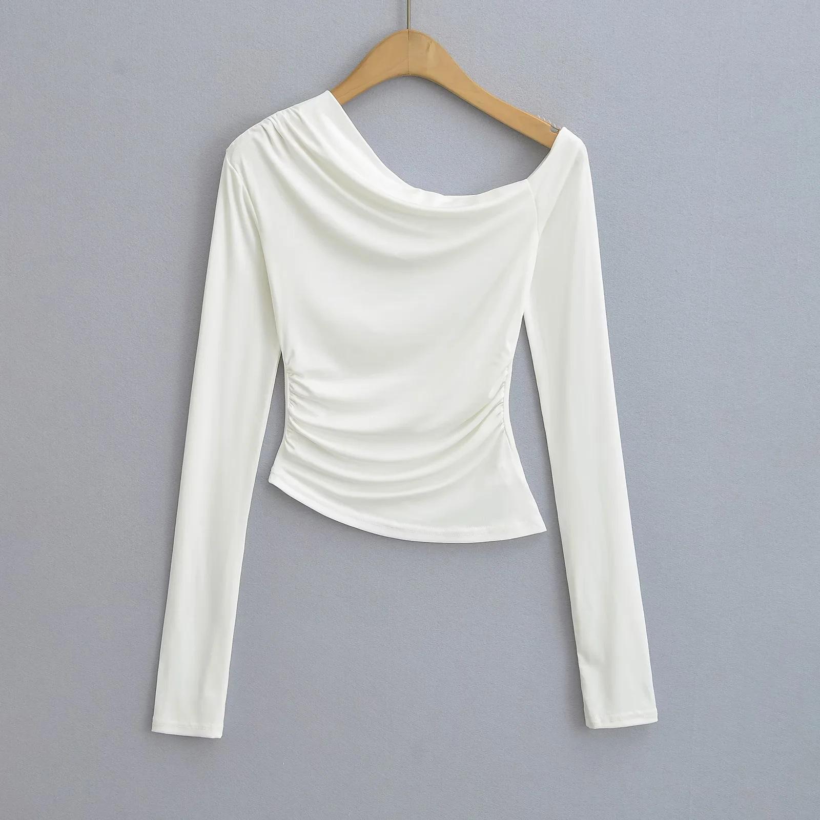 2025 Verano Nuevo Deseo Puro Chica Sexy Camiseta Sexy Hombro Inclinado Diseño de Mujer Nicho Camiseta Corta de Fondo Top