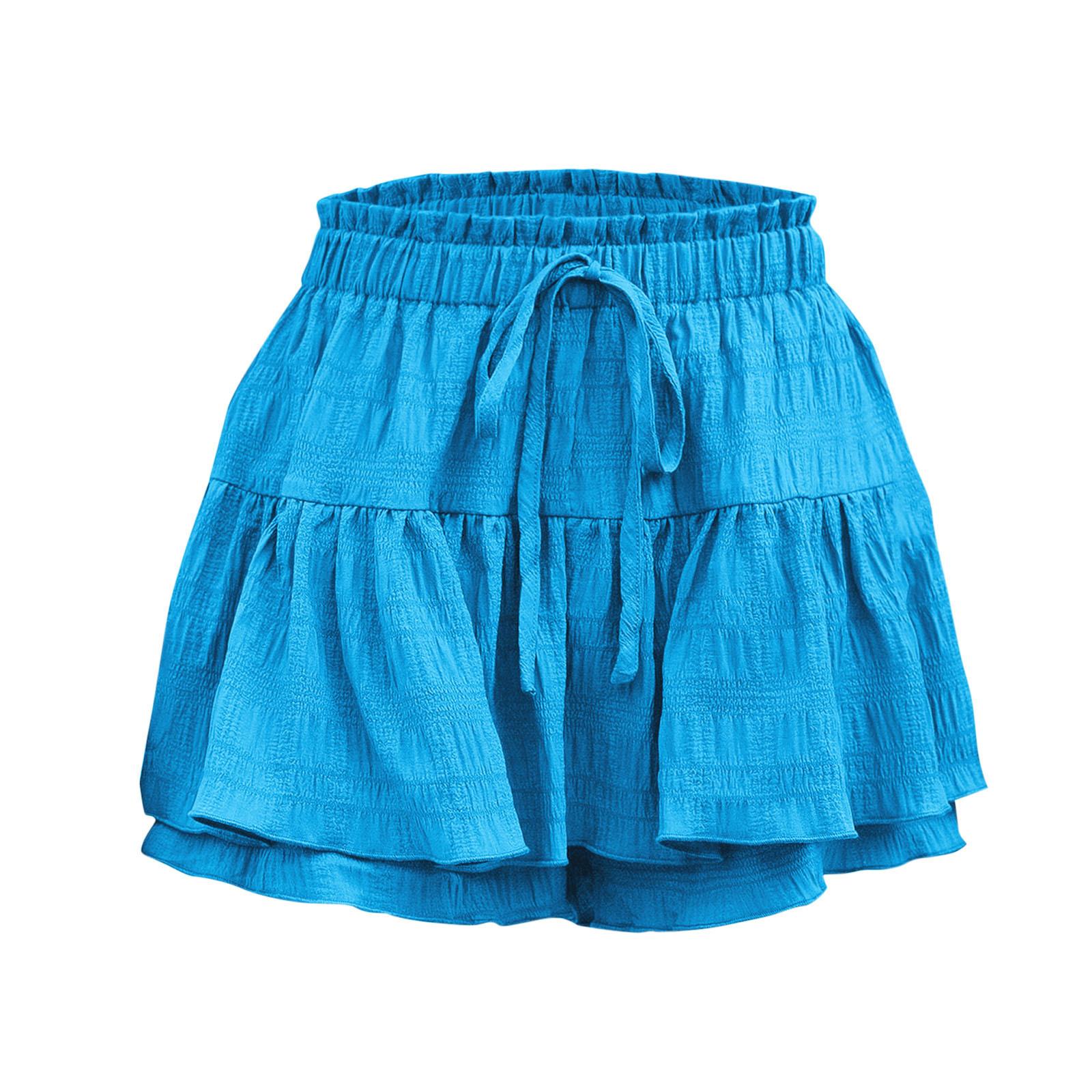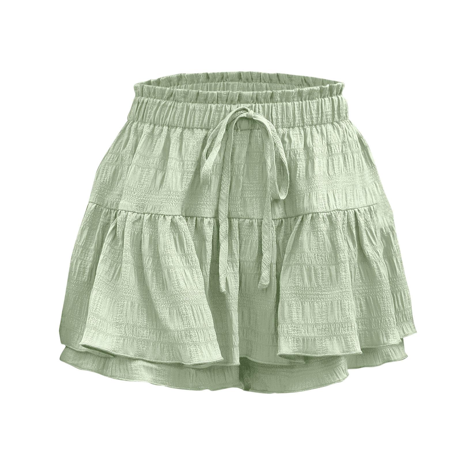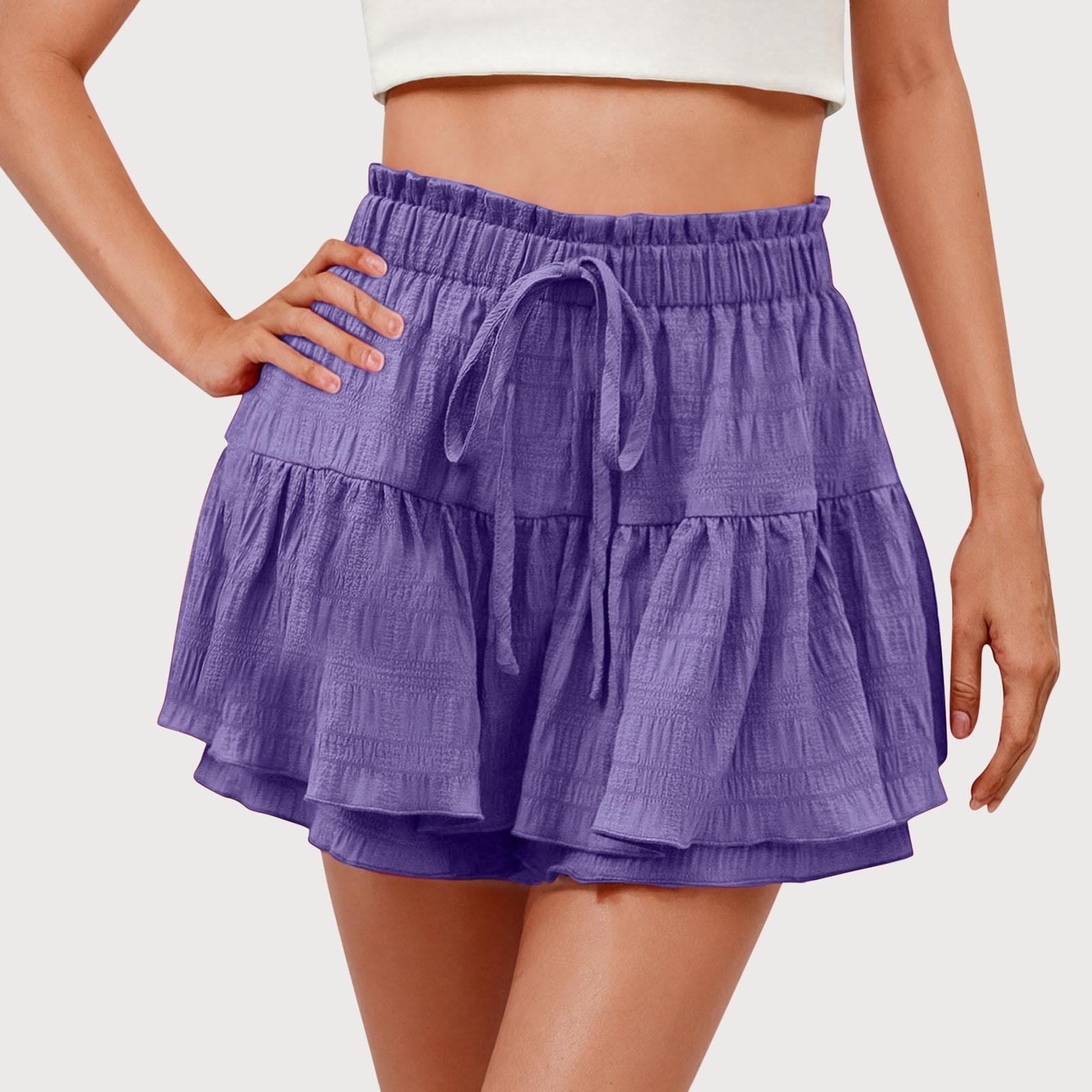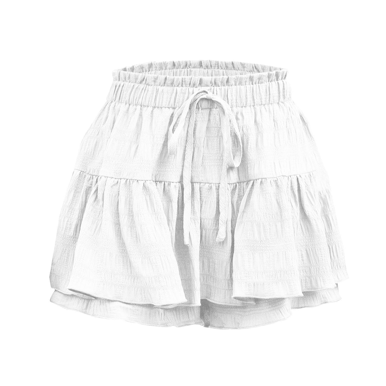 2025 Amazon Transfronterizo Moda de Verano para Mujer Volante Color Sólido Cordón Skort Shorts