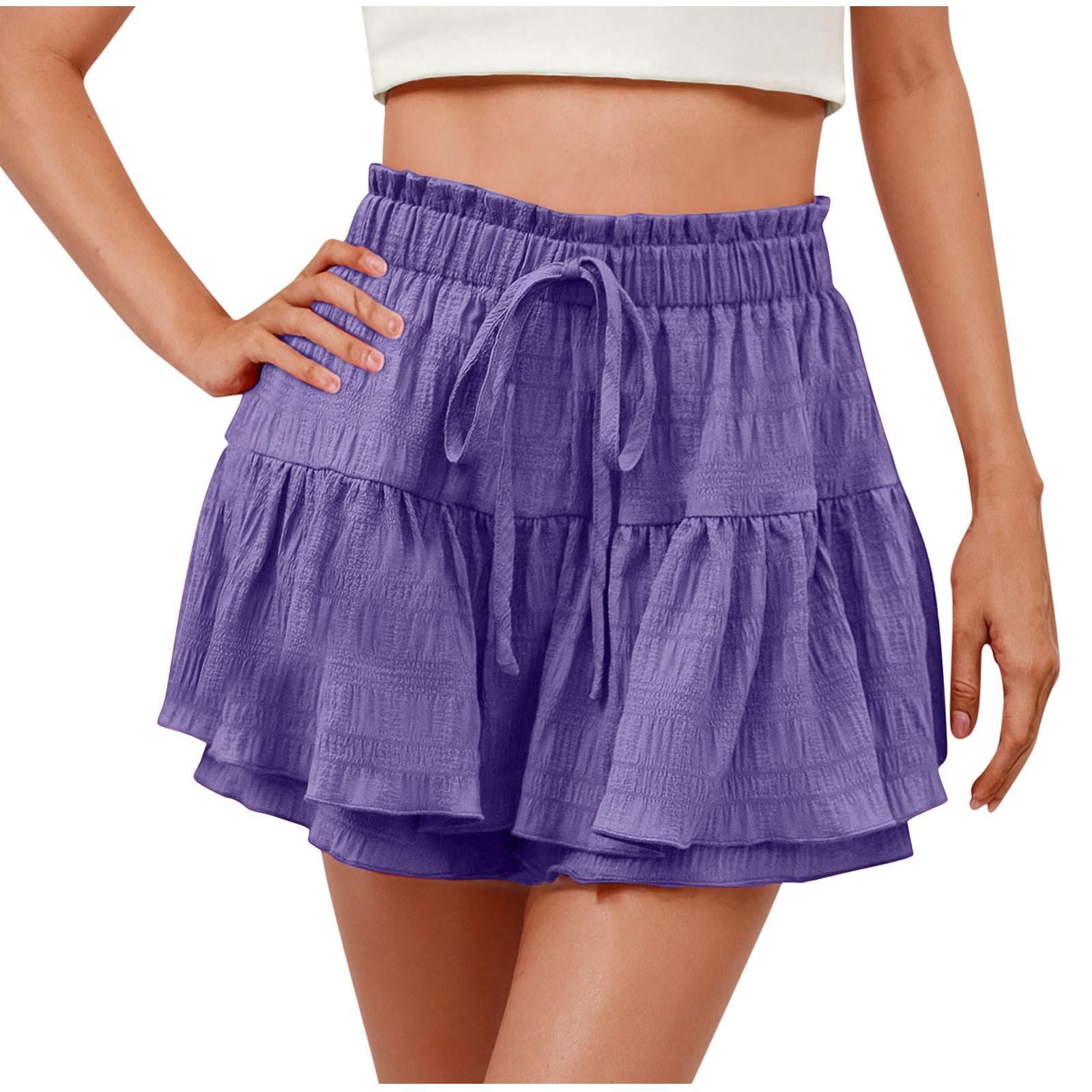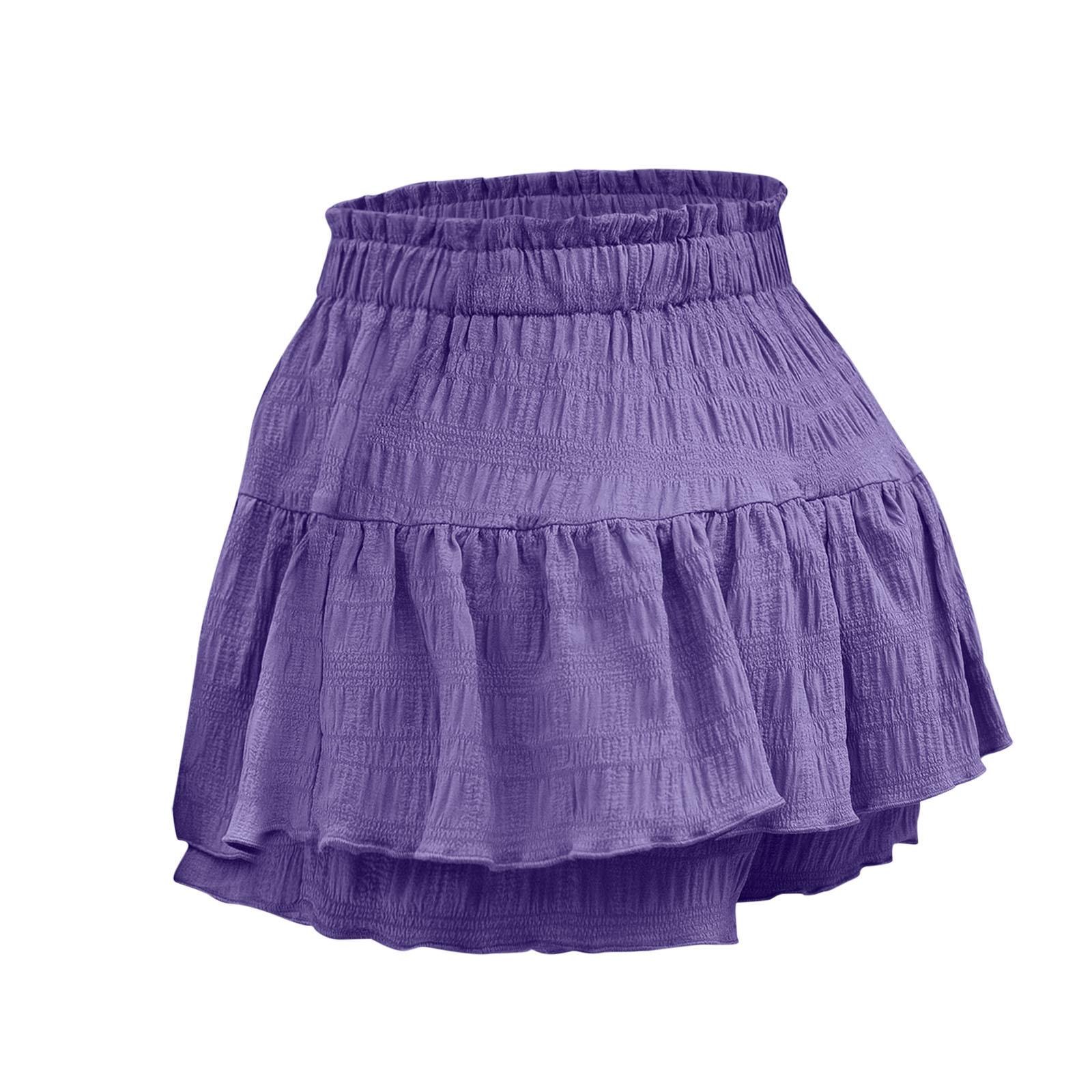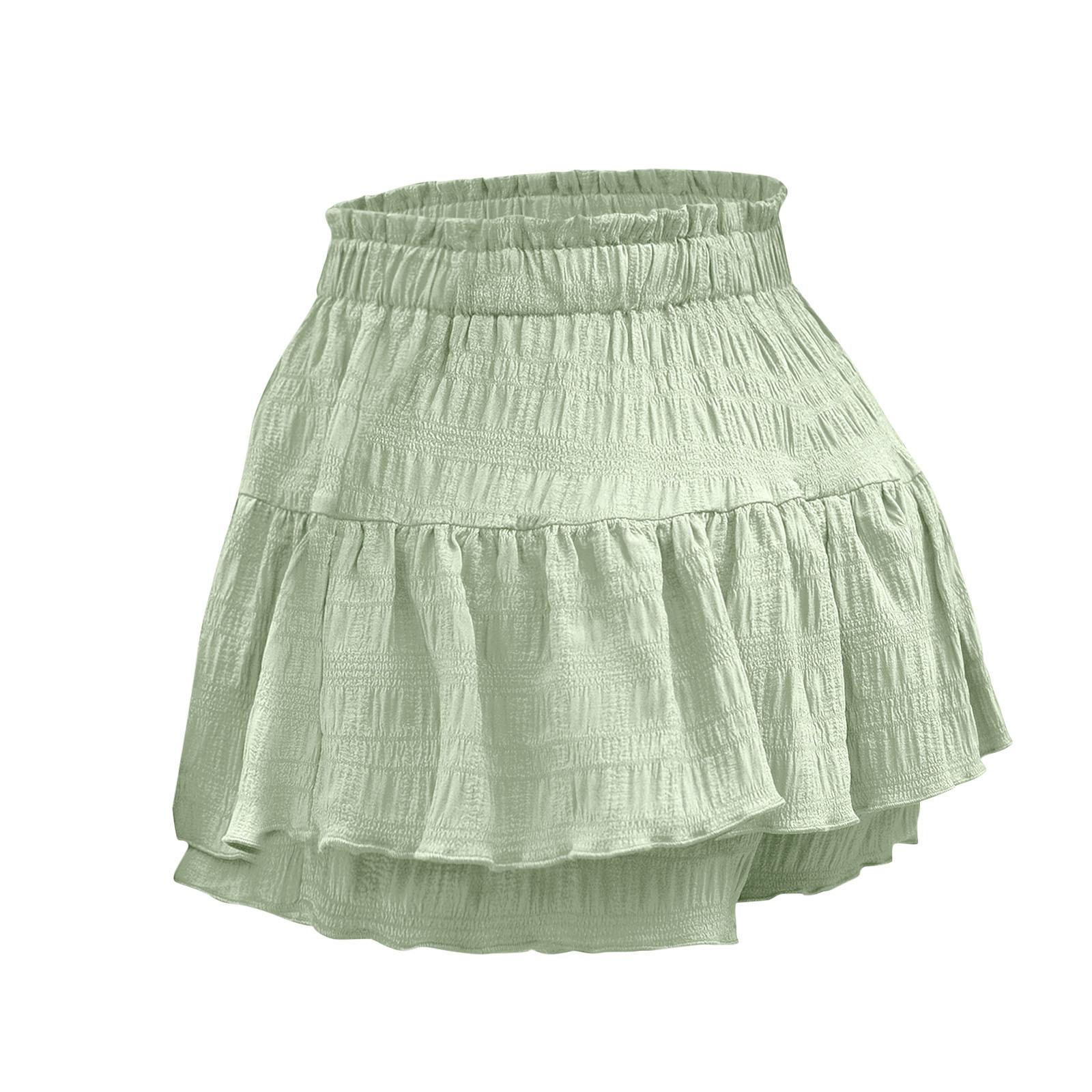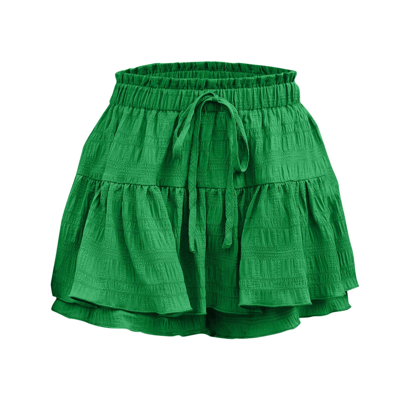 2025 Amazon Transfronterizo Moda de Verano para Mujer Volante Color Sólido Cordón Skort Shorts