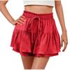 Pantalones cortos tipo culotte con cordón y volantes de color liso para mujer, moda de verano 2025 de Amazon Cross Border